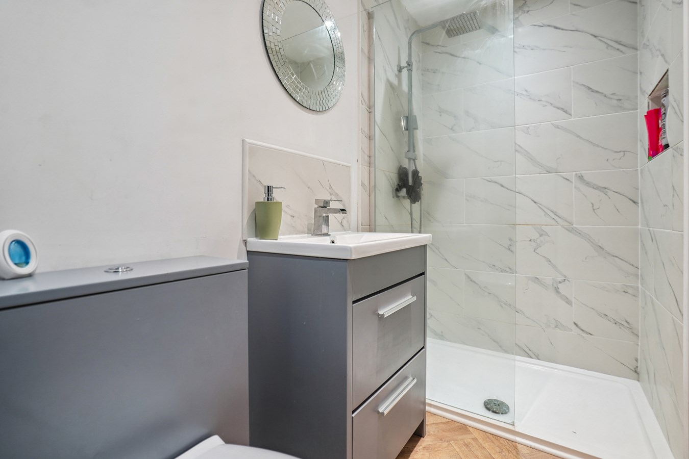 Accommodation comprises three well-proportioned bedrooms, two contemporary bathrooms, and a modern open-plan living area perfect for family life and entertaining. Additional benefits include double glazing, off-street parking, and a private rear garden.