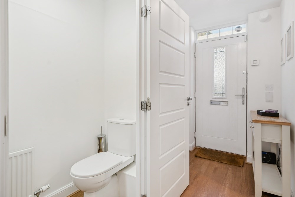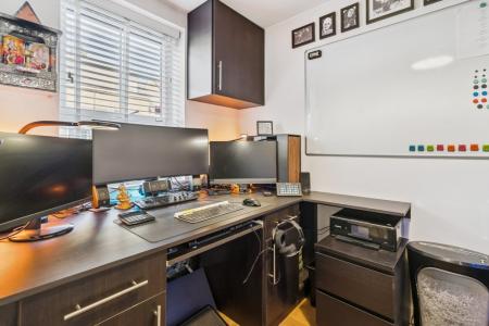 The ground floor welcomes you into a spacious kitchen, living and dining room stretching the full width of the property, with French doors opening onto the rear garden and creating an ideal space for both everyday living and entertaining. A study sits to the front of the house, offering a perfect work-from-home environment or an additional quiet room, while a downstairs WC and welcoming entrance hallway add further practicality. The property also benefits from a fitted water softener, enhancing comfort throughout the home.