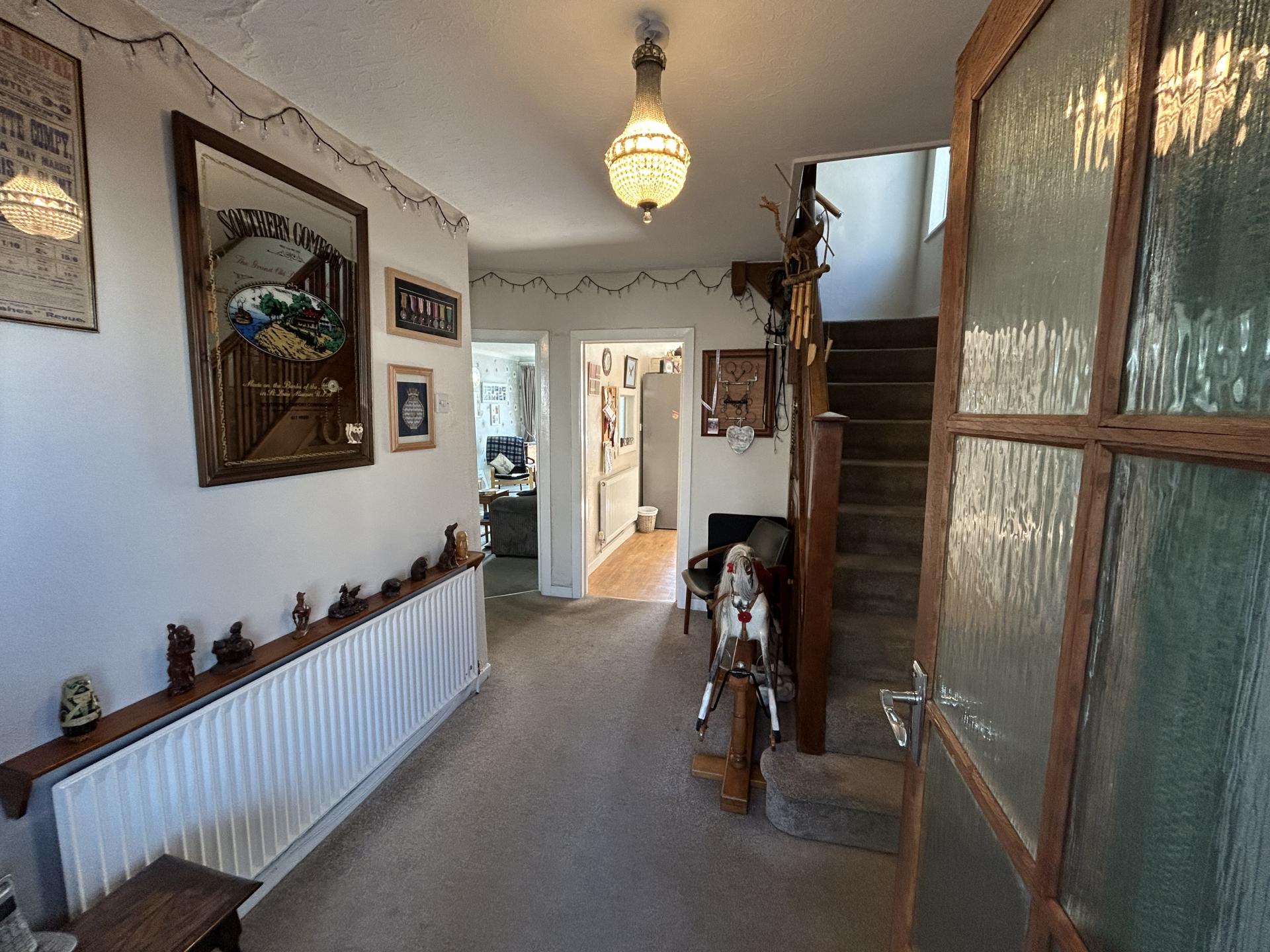 RECEPTION HALL Wide welcoming reception area. Stairs off. Understairs storage.