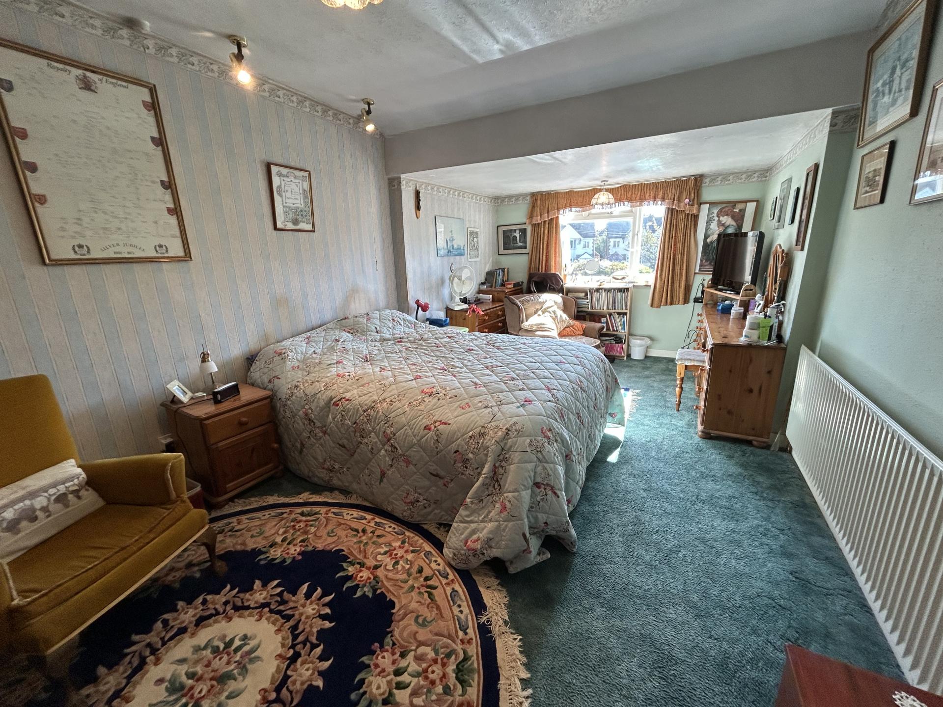 BEDROOM TWO (FRONT) 15' 11" x 9' 8" (4.876m x 2.966m) Built-in storage cupboards/wardrobe space. Feature round bay window.