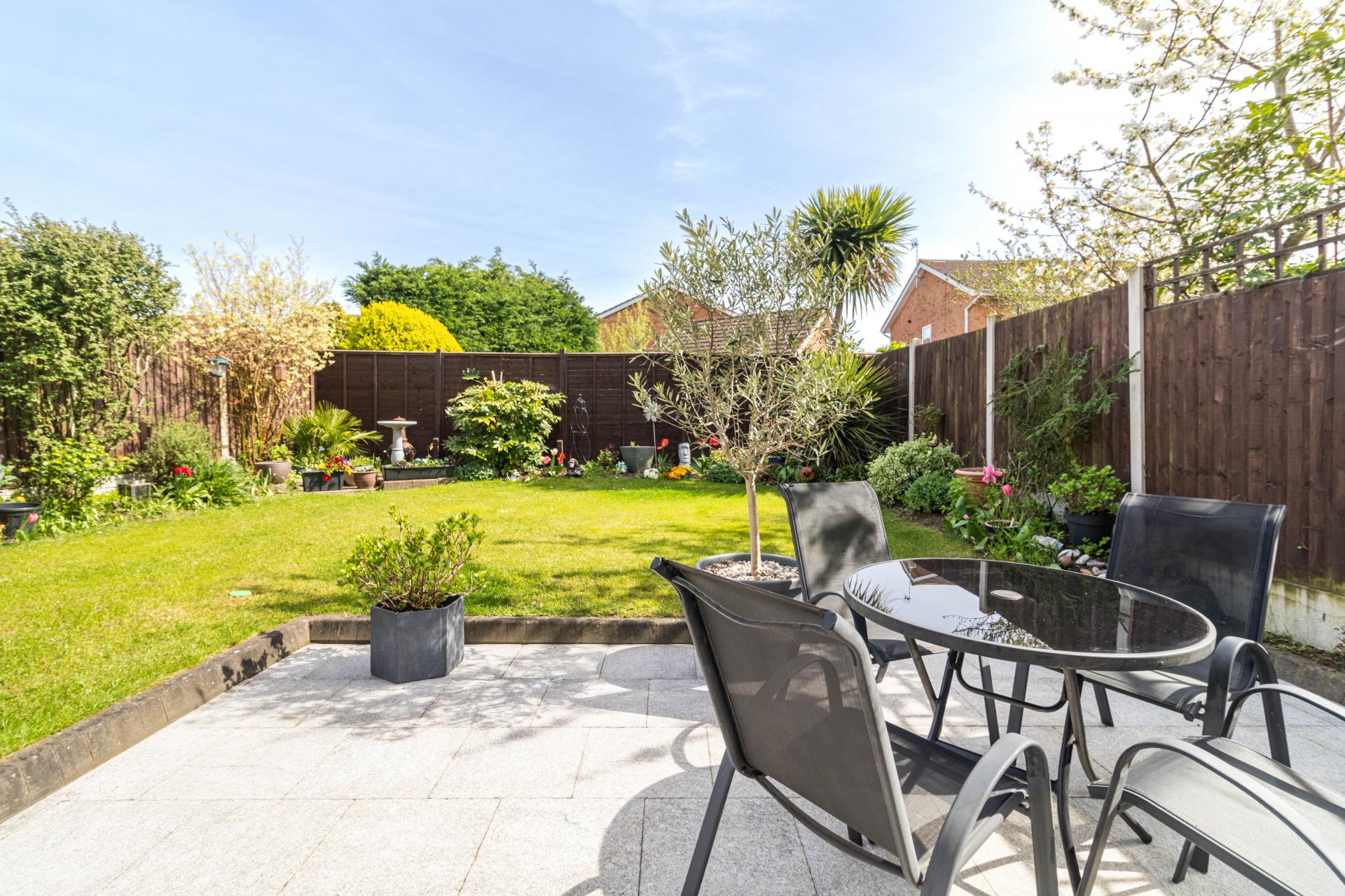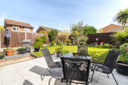 GARDEN Mainly laid to lawn with mature shrubs and plants and a patio area for dining.