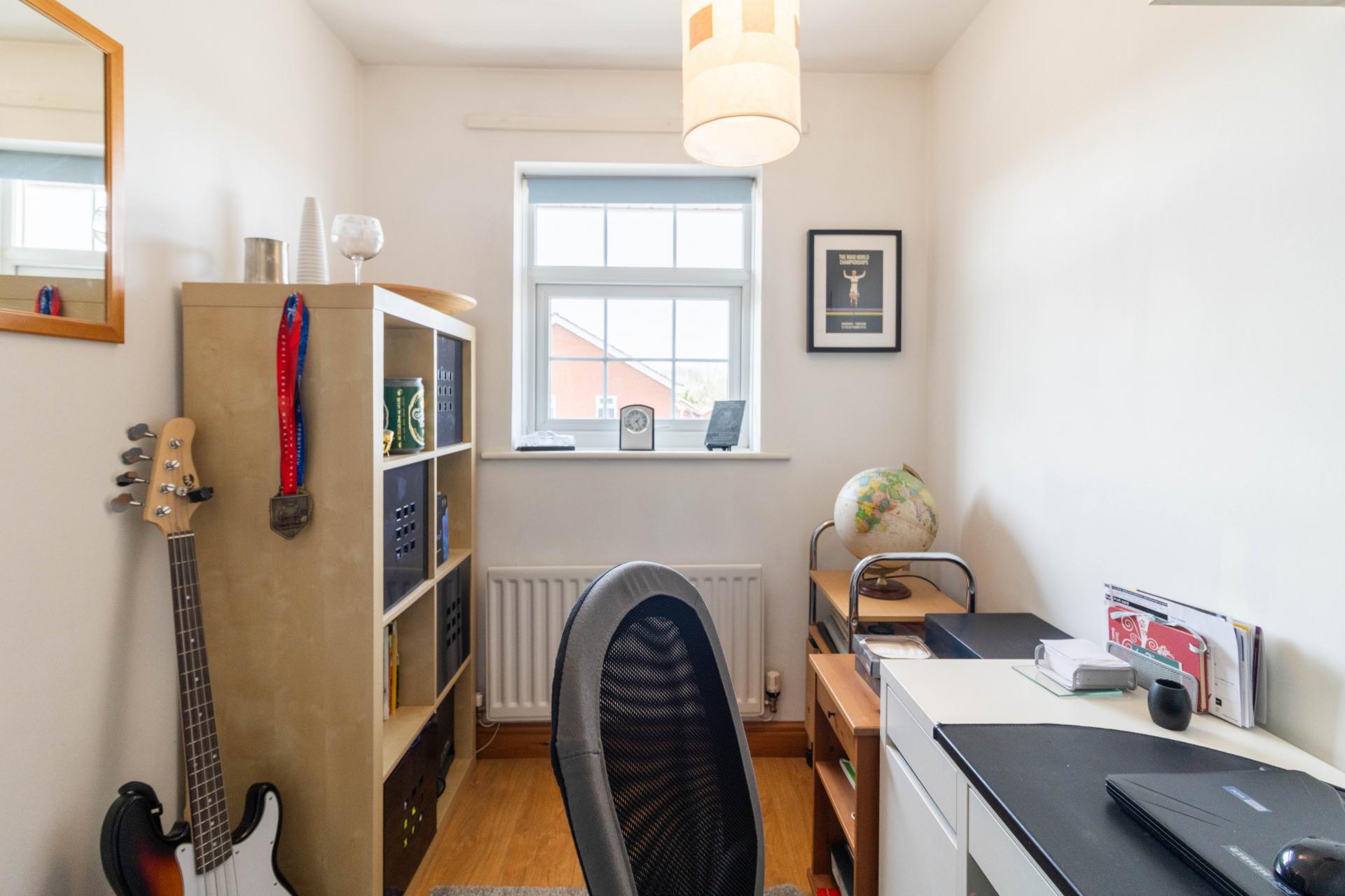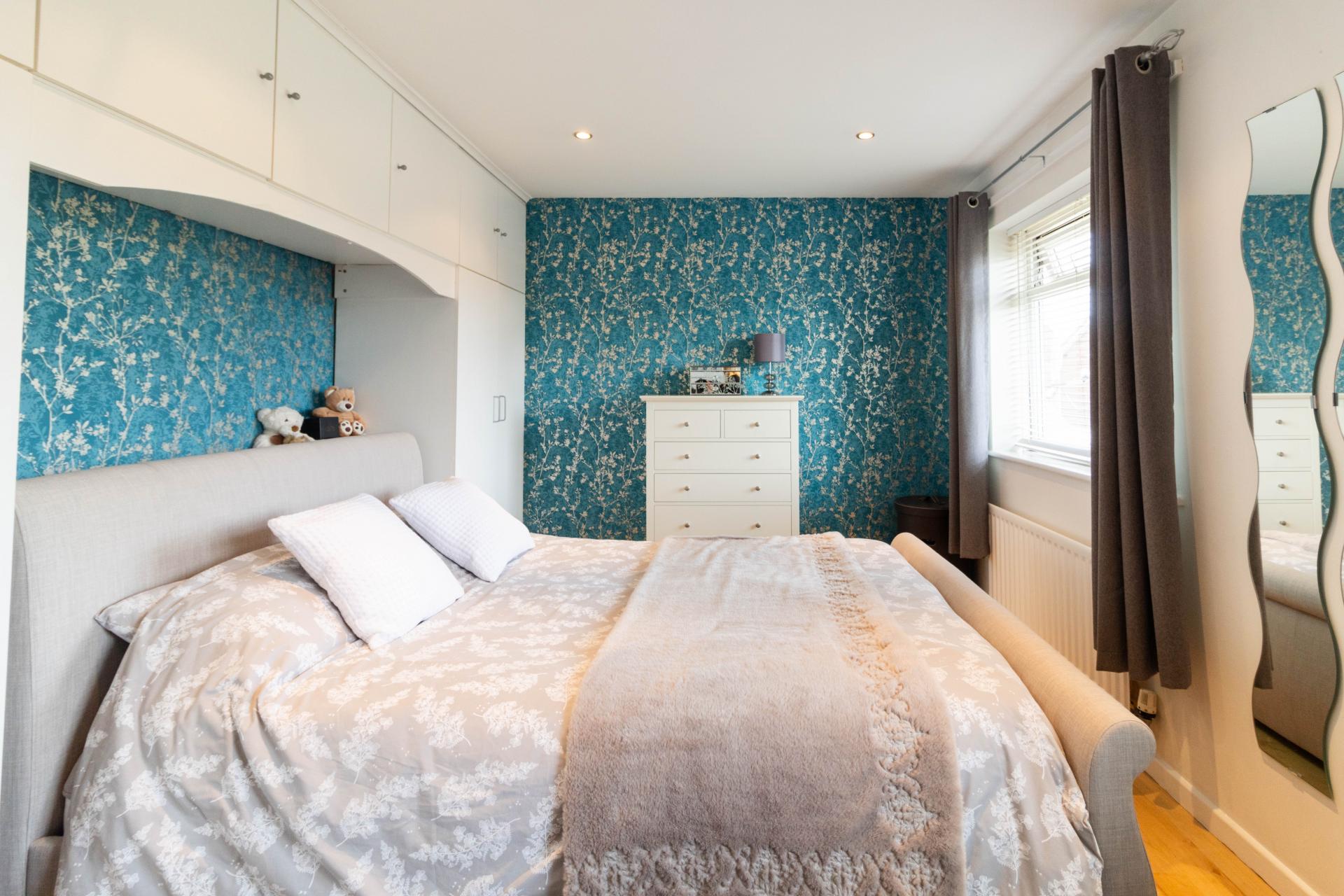 MASTER BEDROOM A bright room with two windows to rear, laminate flooring, fitted wardrobes and spotlights.