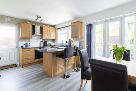KITCHEN/DINER Patio doors to the rear garden, laminate flooring, electric hob, electric oven,