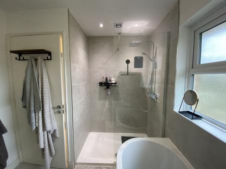 BATHROOM 8' 6" x 7' 8" (2.59m x 2.34m) A modern fitted bathroom with UPVC window, vanity wash hand basin, shower cubicle, bath and low level WC.