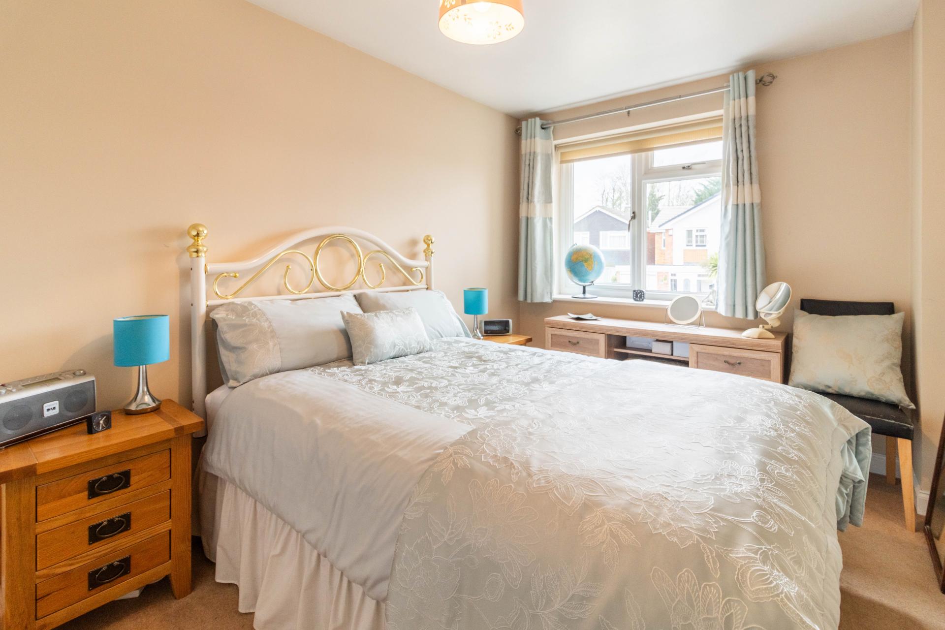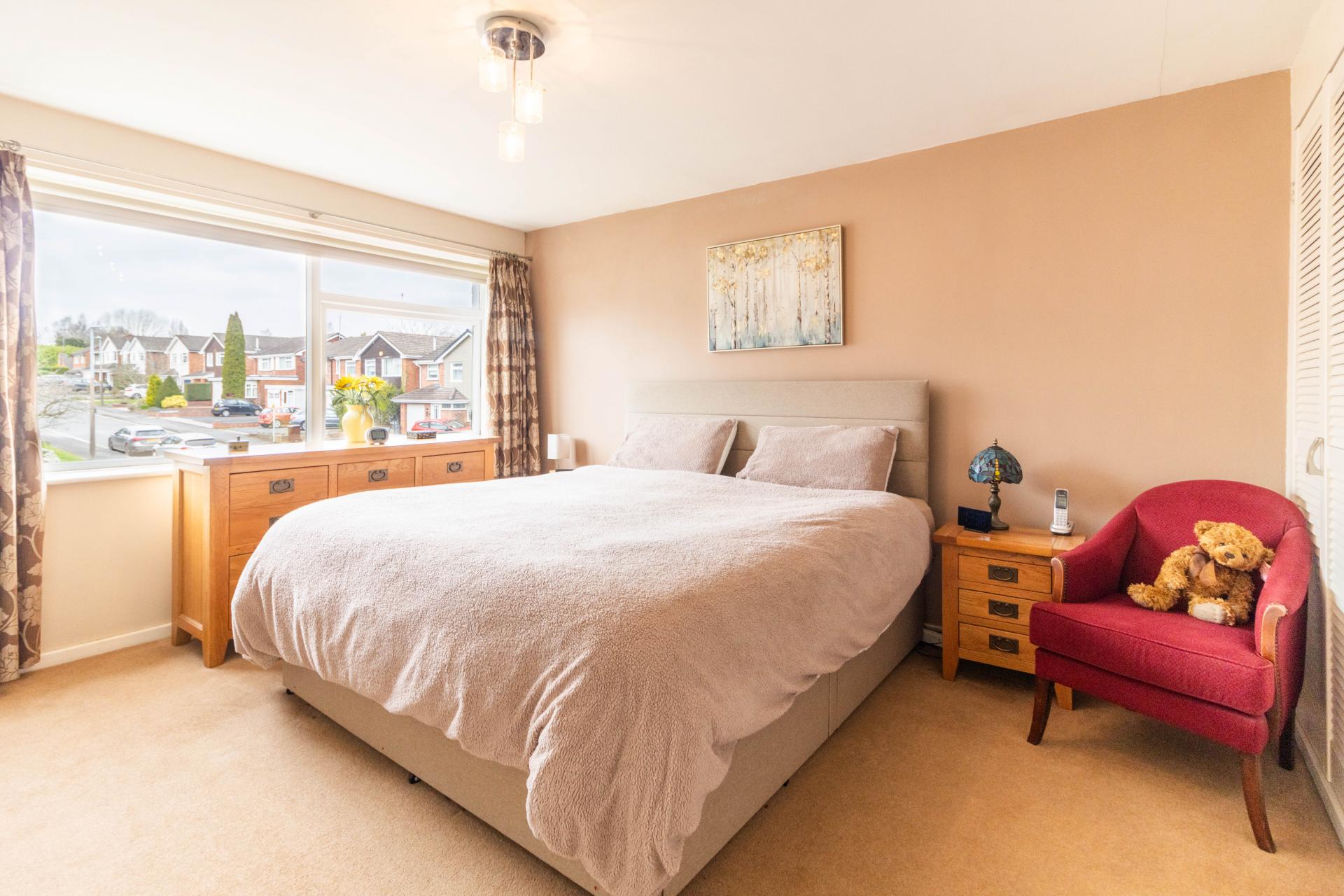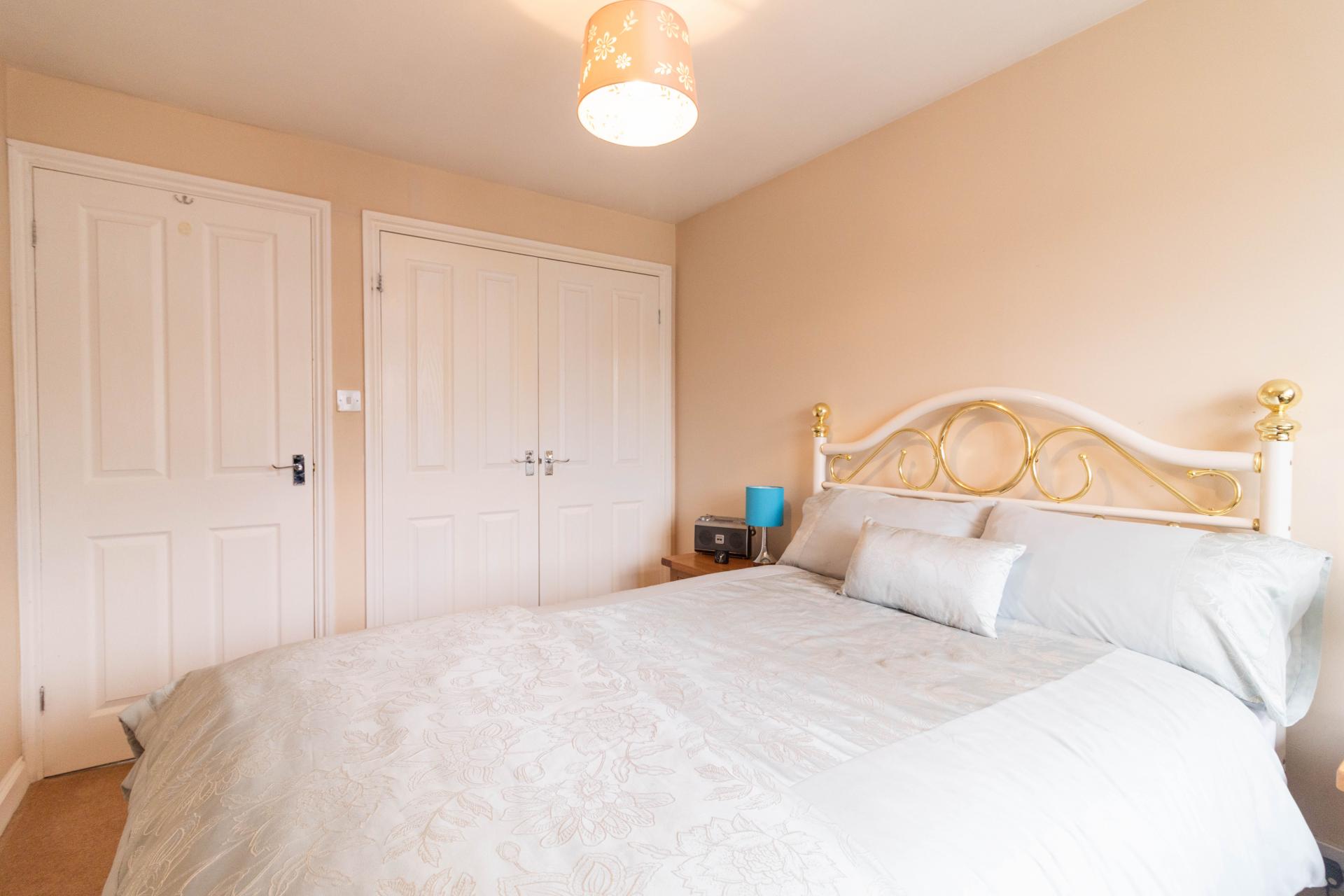 BEDROOM THREE Window to front elevation with double fitted wardrobes.