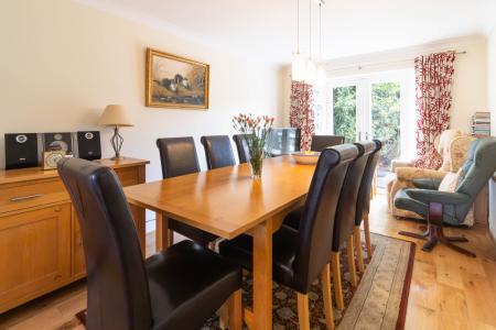 DINING ROOM Wooden flooring and double doors to garden.