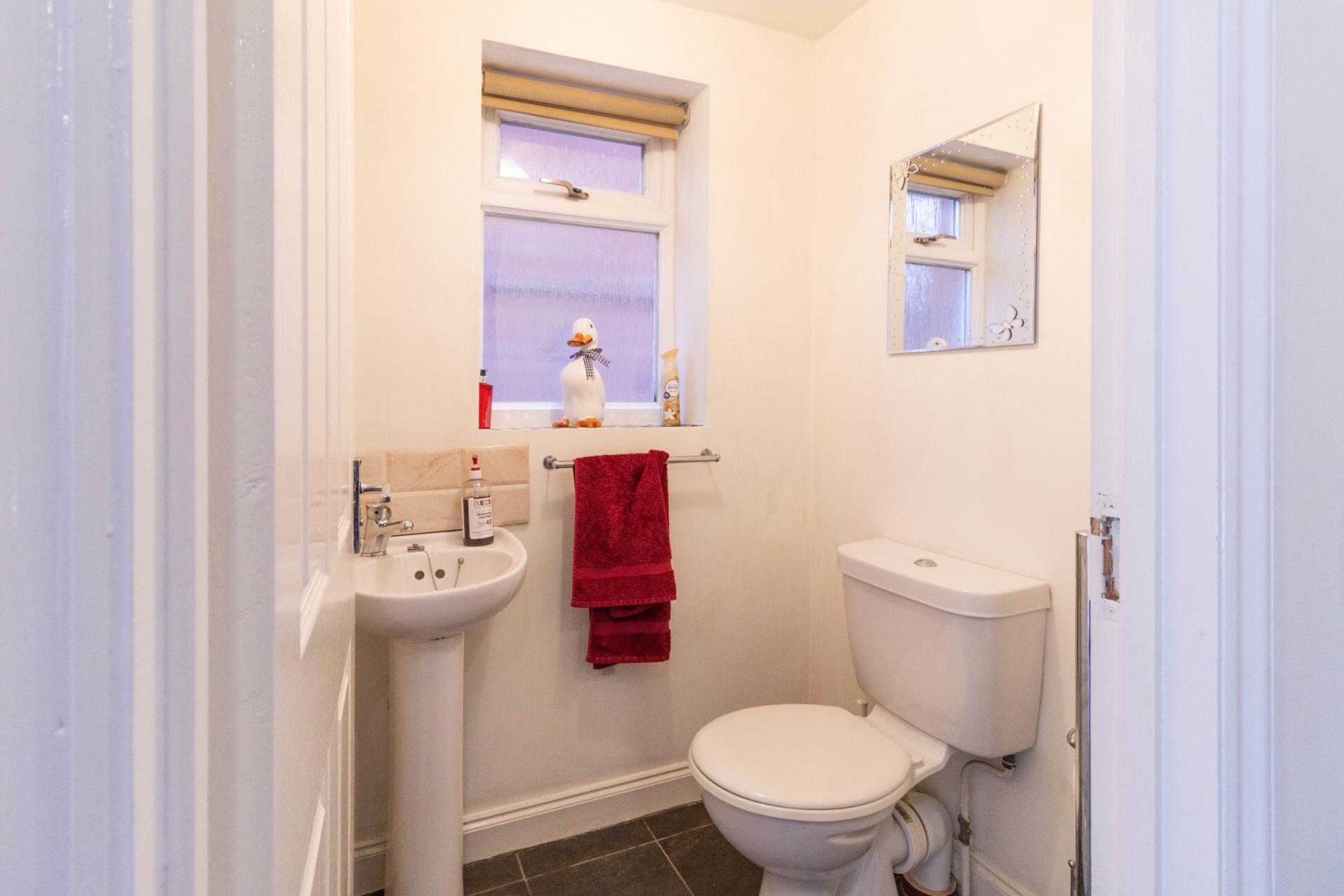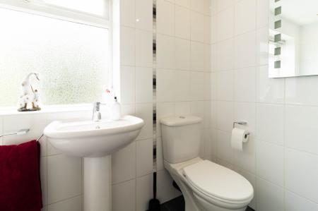 DOWNSTAIRS WC Tiled flooring, window to the side elevation, low level WC and sink.