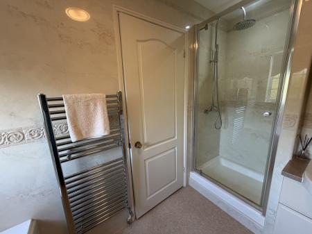 EN-SUITE With shower cubicle, low level WC, vanity sink and fitted storage cupboards.