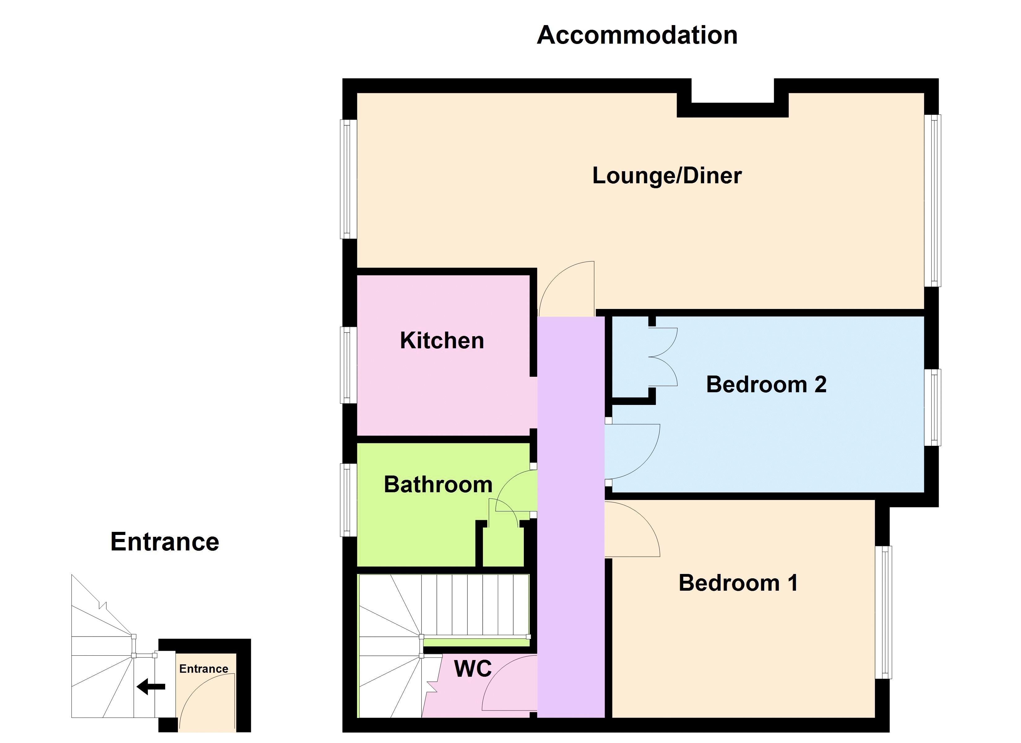 The property comprises two bedrooms, alongside a spacious lounge/diner.