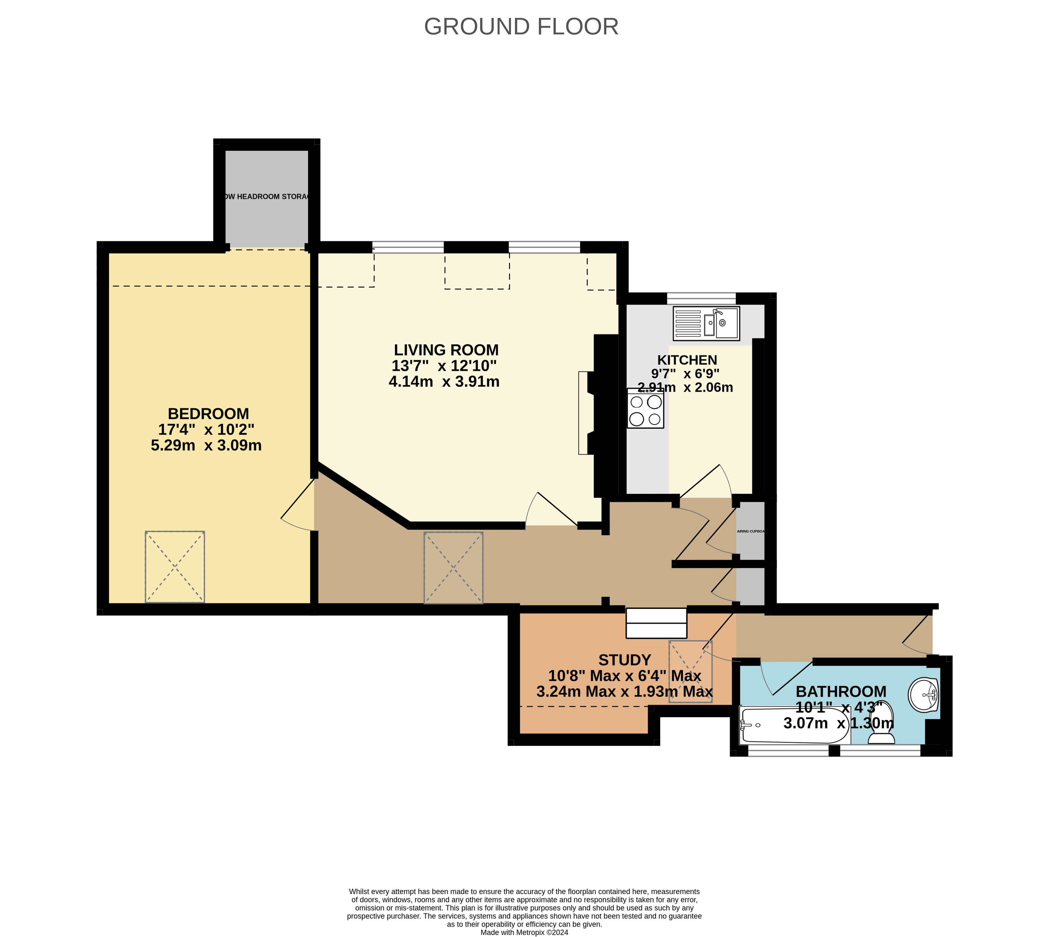 Study/Work Area 10'8" x 6'4" (3.25m x 1.93m). Maximum measurements