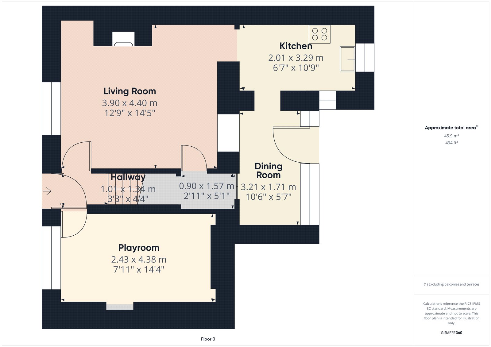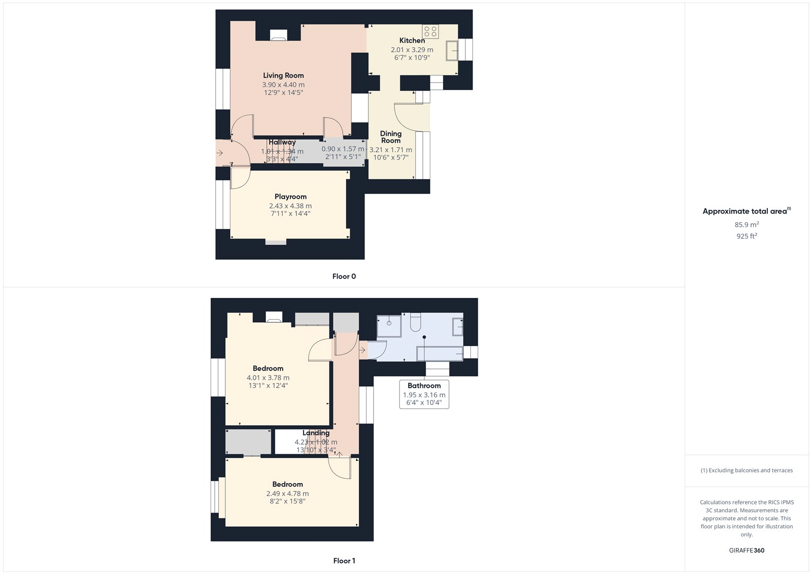 - Approximately 925 sq. ft.