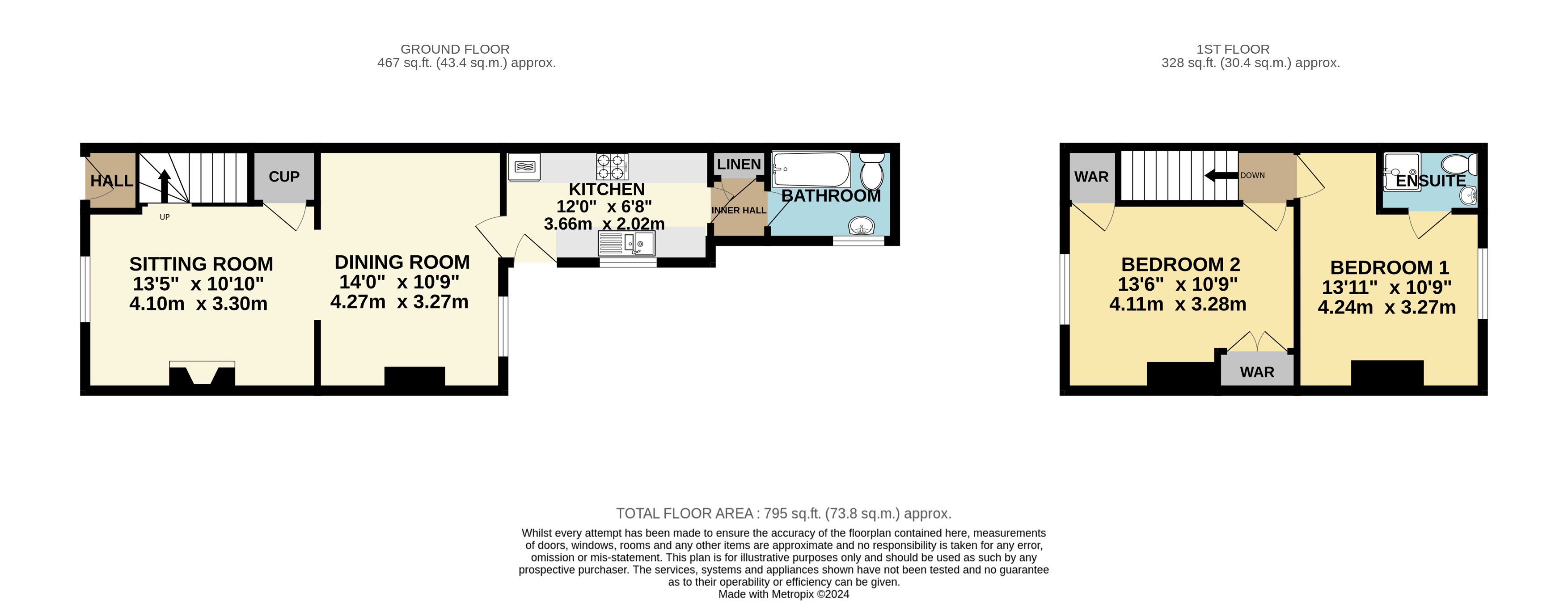 A carpeted staircase from the sitting room leads to the first floor where there are two double bedrooms one having a tiled en-suite shower room fitted with a three piece white and chrome suite.