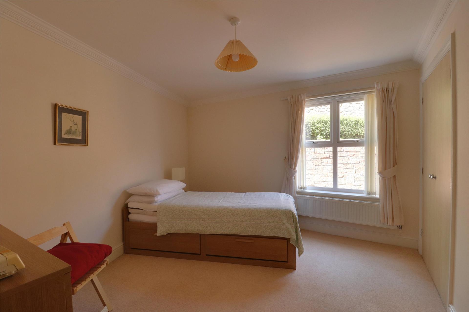 This particular apartment is located on the ground floor with doors off the sitting/dining room onto a patio and small garden with wonderful sweeping views over part of the town towards the surrounding hills. The apartment offers beautifully presented and generously proportioned gas centrally heated and double glazed accommodation and in brief comprises; communal entrance hall, private hall with walk in cloaks/store room and airing cupboard, open plan sitting/dining room enjoying wonderful views with double doors to outside and archway to a fitted kitchen/breakfast room overlooking a side garden and fitted with a range of base and wall units with appliances to include gas hob, electric double oven, built in microwave, dishwasher, washer/dryer and tall fridge/freezer. There are two double bedrooms both with built in double wardrobes with the principal room having a part tiled en-suite shower room fitted with a three piece white and chrome suite with tiled floor and to complete the accommodation there is a part tiled bathroom again fitted with a three piece white and chrome suite with tiled floor.