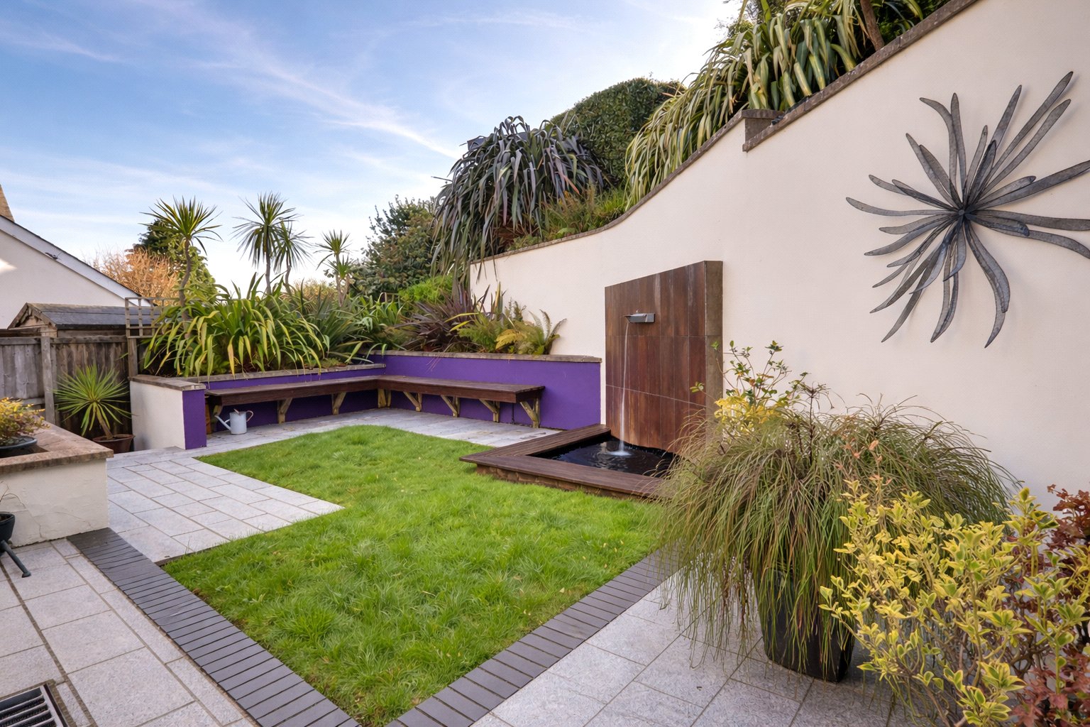 Externally, the professionally designed and landscaped garden is accessed from the first floor and has been carefully arranged to create a stylish yet tranquil outdoor retreat, complete with fitted timber seating and an elegant water feature. The property further benefits from a garage and additional off-street parking.
