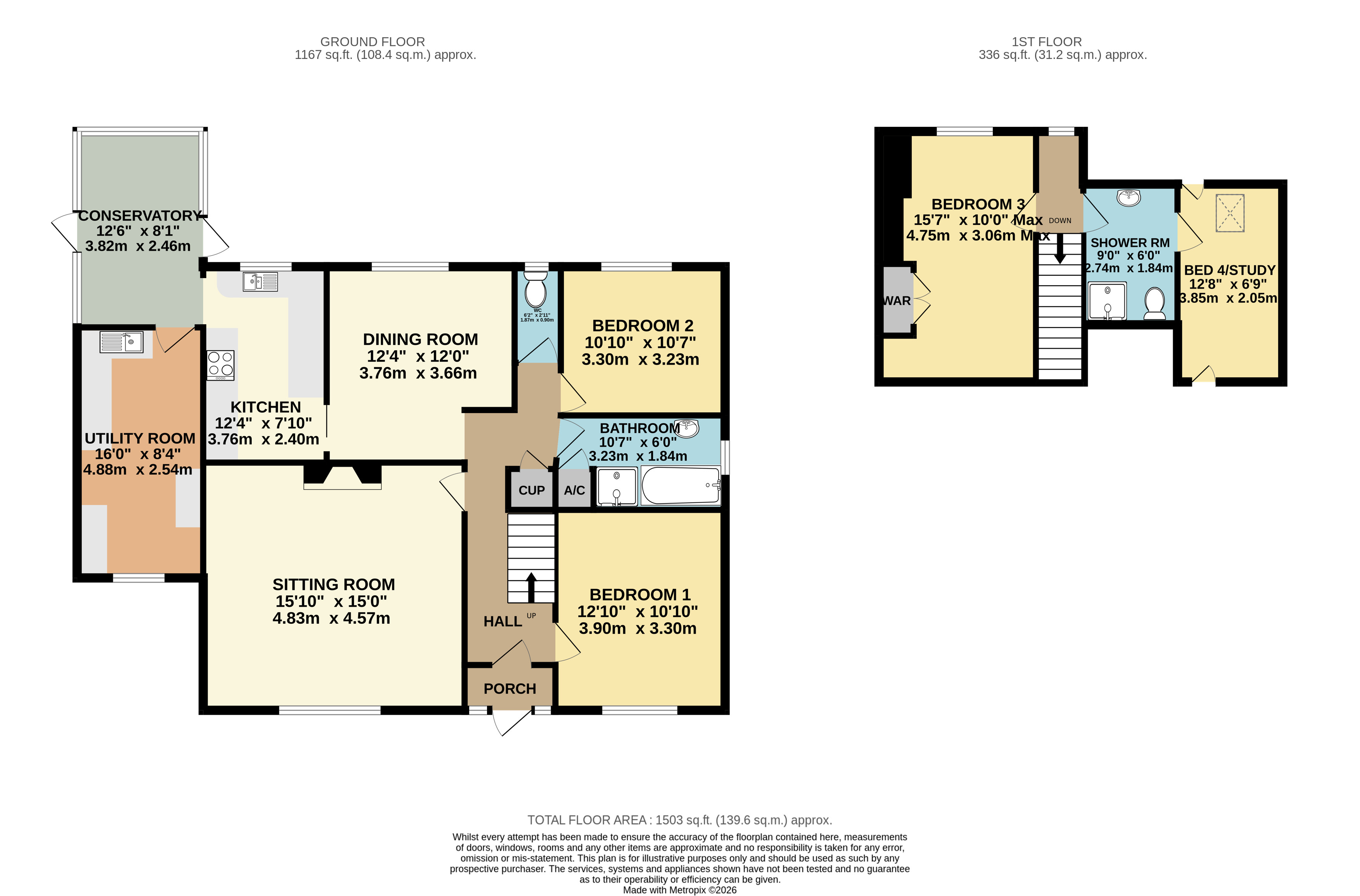 There are two double bedrooms on the ground floor together with a part tiled bathroom with separate shower enclosure and a part tiled separate W.C with low level suite. A carpeted staircase from the reception hall rises to the first floor where there are two further bedrooms and a shower room fitted with a three piece white suite.