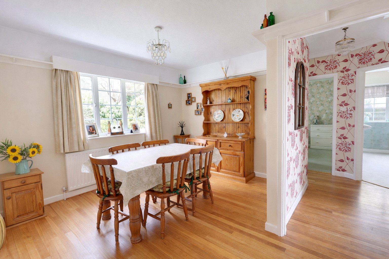 The accommodation in brief comprises; Double glazed door leading into an entrance lobby with multi pane door opening into a welcoming reception hall with wood strip flooring and understairs cupboard. A double aspect sitting room with fireplace and electric fire overlooks the front garden with views towards St Michael's Church. There is a separate dining room with wood strip flooring and sliding door to a kitchen fitted with a modern range of base and wall units with timber effect work tops and stainless steel one and a half bowl single drainer sink unit with mixer tap, integrated appliances to include a ceramic hob with hood over, eye level double oven, fridge and dishwasher and with access through to a double glazed conservatory enjoying wonderful views over the rear gardens towards farm and woodland. A generous utility/hobbies room is fitted with a range of base and wall units with roll edged work tops, stainless steel single drainer sink unit, plumbing for washing machine and tumble dryer, gas boiler, pine panelled ceiling and tiled floor.