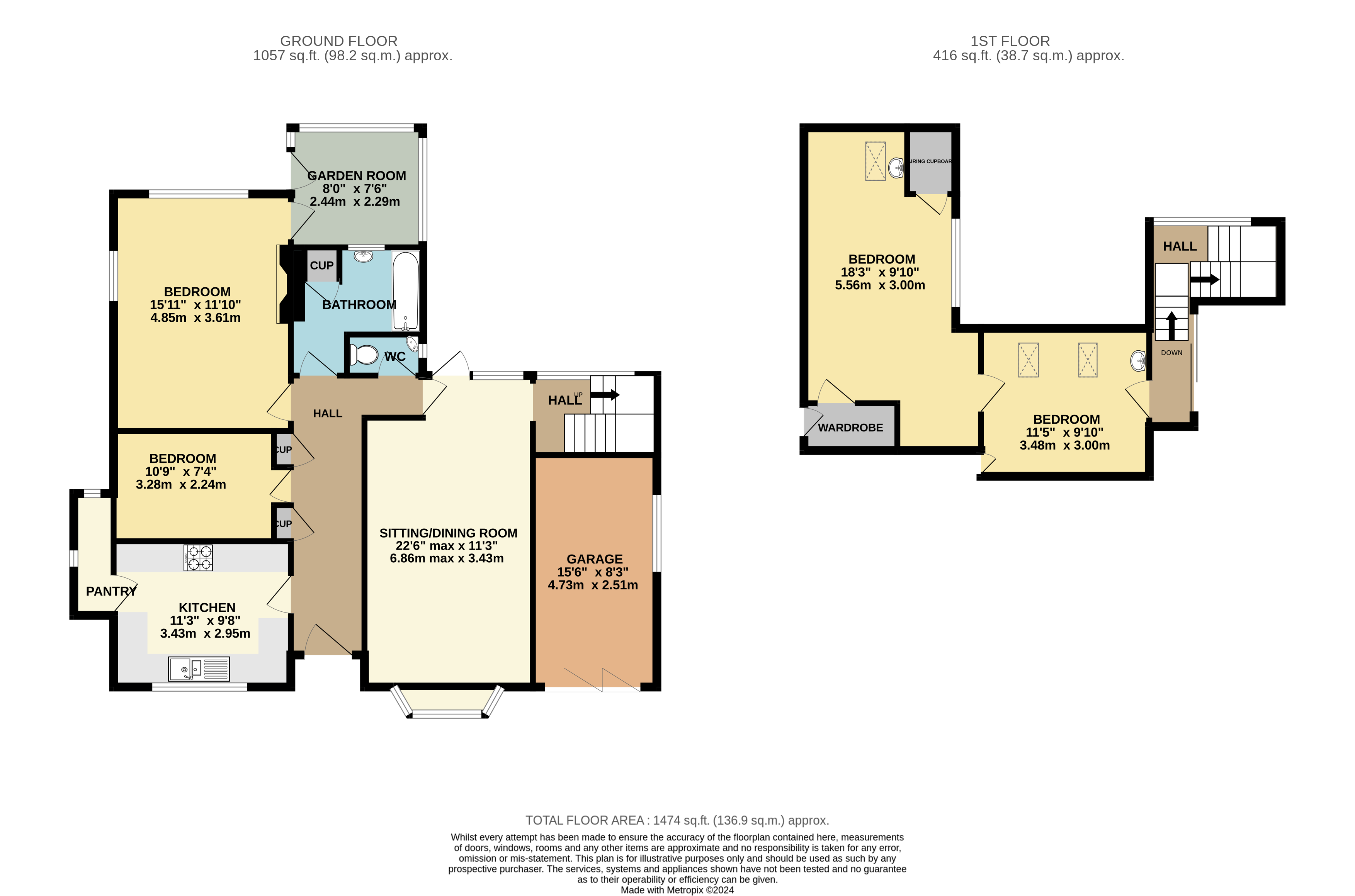 The front gardens are arranged behind low stone walling with double wrought iron gates to an attached garage which has potential to incorporate into the accommodation subject to the usual regulations. There is access around the side to the rear where there is a small level garden laid to lawn with gravelled paths and timber garden store with WC.
