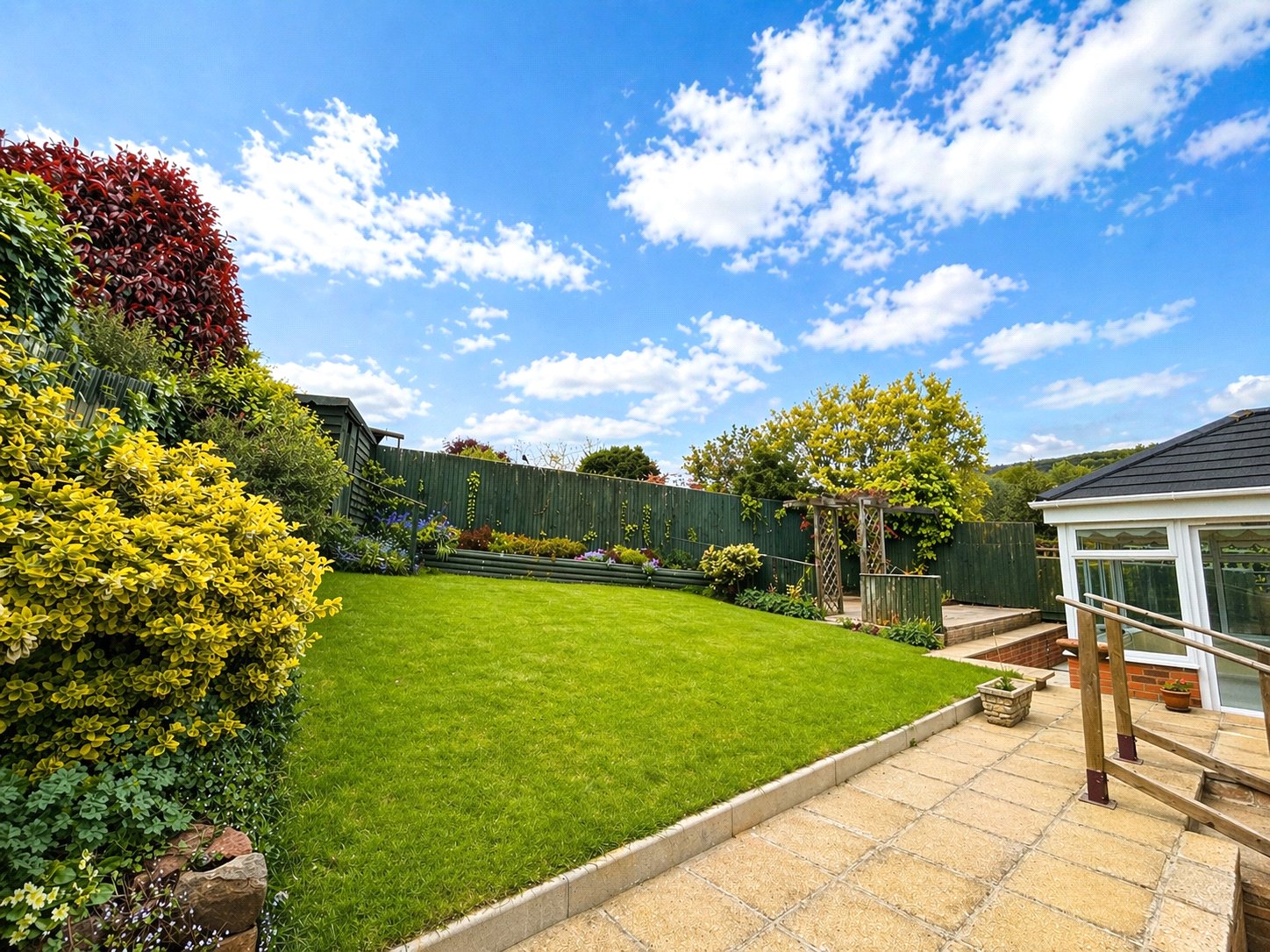 Outside, the property continues to impress. The gardens to the front and rear are well maintained and provide a pleasing balance of approach, outlook and usable outdoor space. A tarmac driveway provides parking for several vehicles and leads to the garage, which benefits from an electric door and power sockets, making it useful not only for storage but also for hobby or workshop use. Altogether, this is a bungalow that combines careful presentation, flexibility and an appealing setting close to the heart of the town.