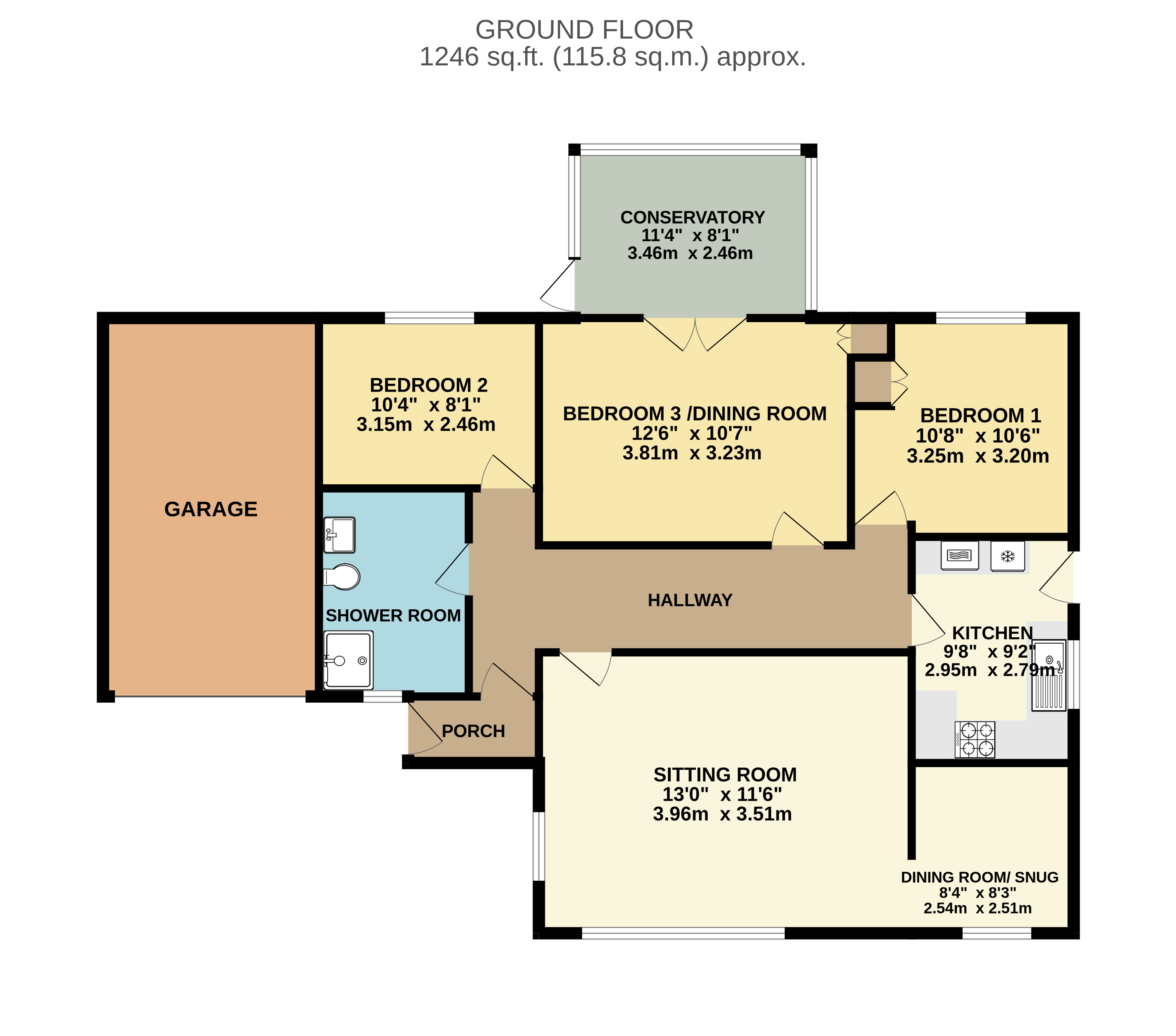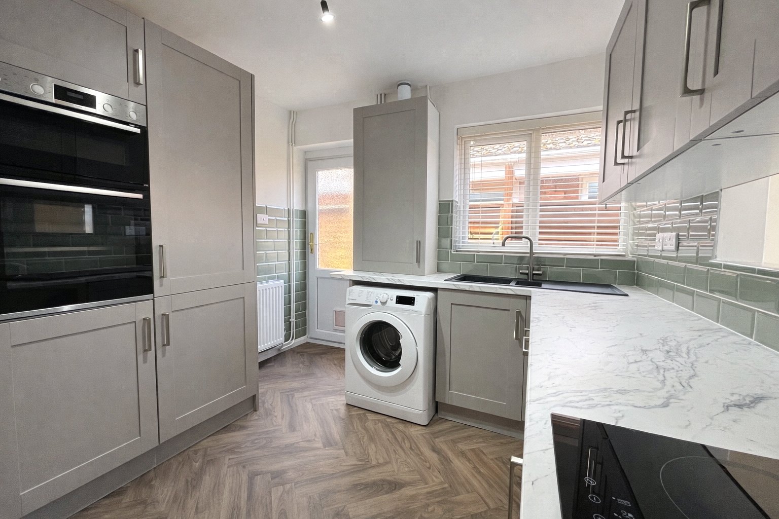 The kitchen has been tastefully fitted with a range of shaker style units complemented by marble effect work surfaces and integrated appliances, with a door providing side access. From here, the layout flows into a versatile dining room which could equally serve as a third bedroom, opening through to a conservatory. The conservatory enjoys a sunny south facing aspect and provides a lovely additional reception area with direct access onto the garden, ideal for relaxing or entertaining.