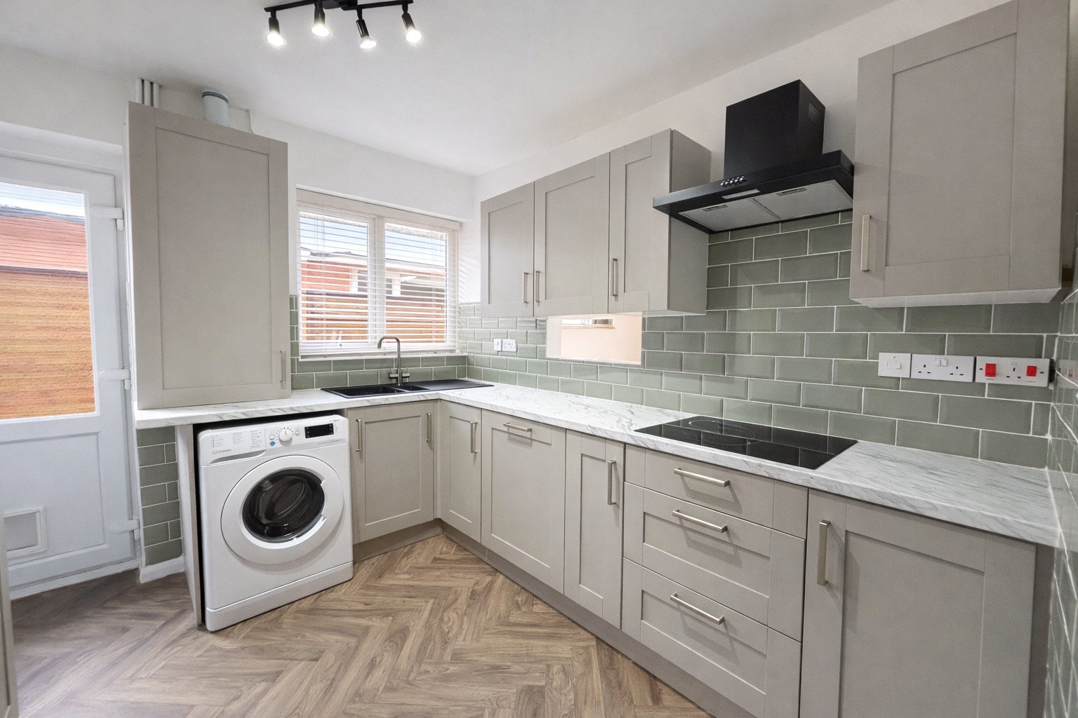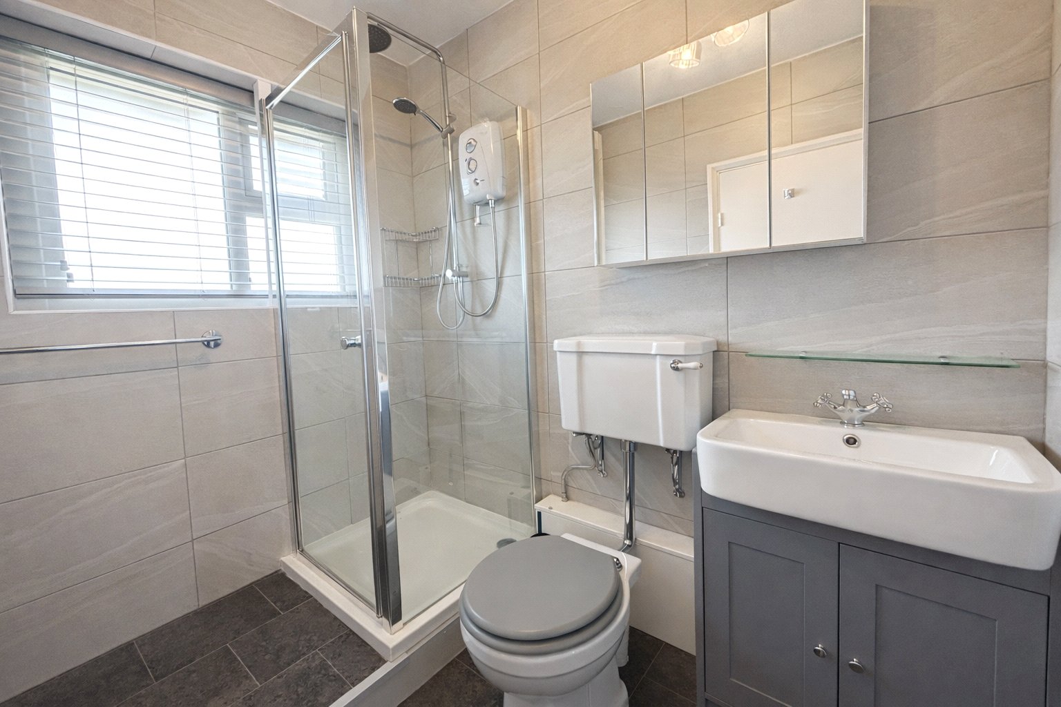 To the rear of the property are two well-proportioned bedrooms, both enjoying views over the garden, with the principal bedroom benefitting from a comprehensive range of fitted wardrobes. The accommodation is served by a stylishly fitted shower room featuring a contemporary suite with rainfall shower and attractive tiling.