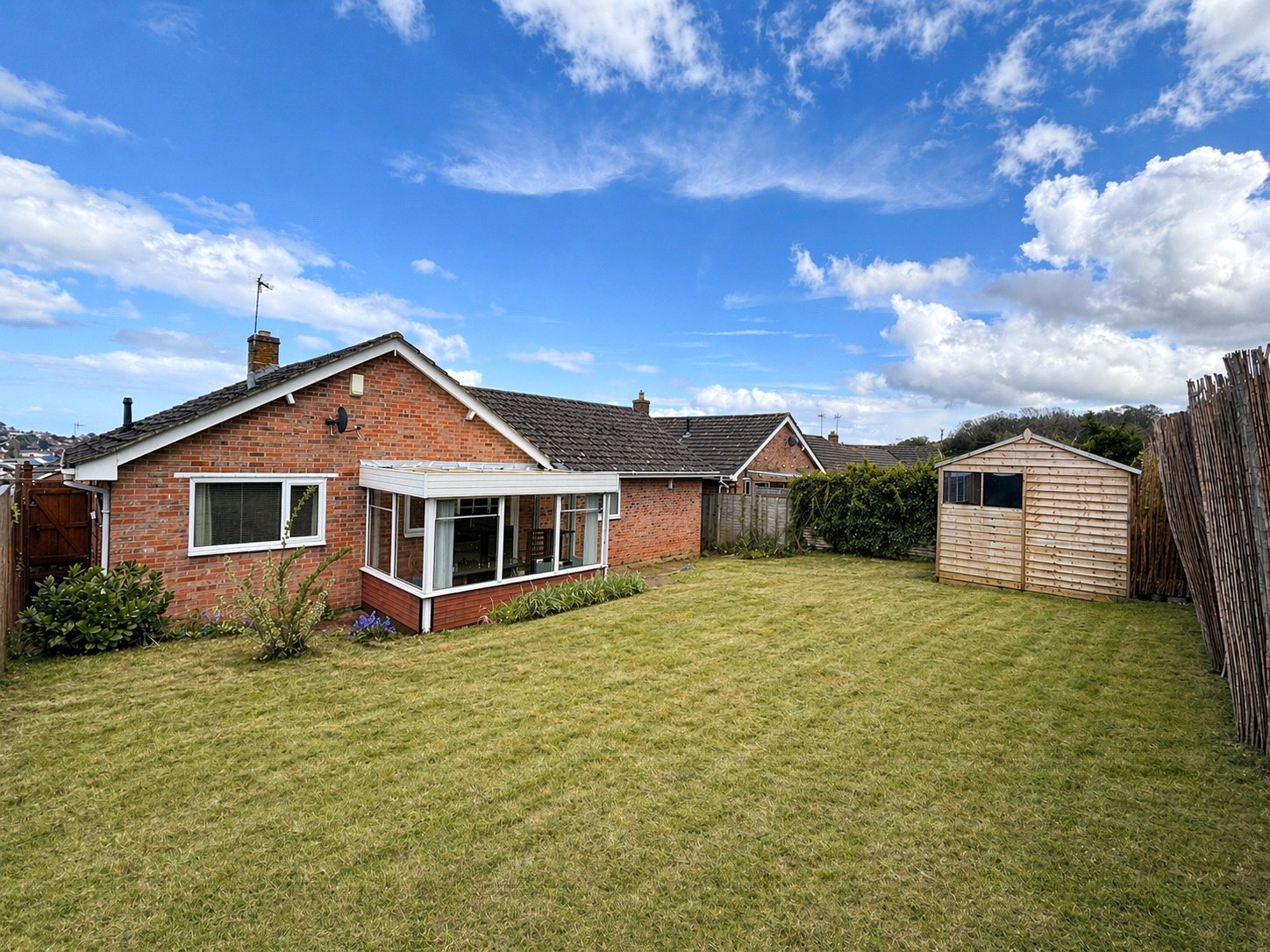 Externally, the property is set within well-maintained gardens. To the front, there is an open plan lawned area alongside a driveway providing off road parking and access to the garage. The rear garden is a particular feature, enjoying a sunny southerly aspect with a good degree of privacy, laid mainly to lawn with a patio area ideal for al-fresco dining, enclosed by quality fencing and complemented by a useful timber workshop.