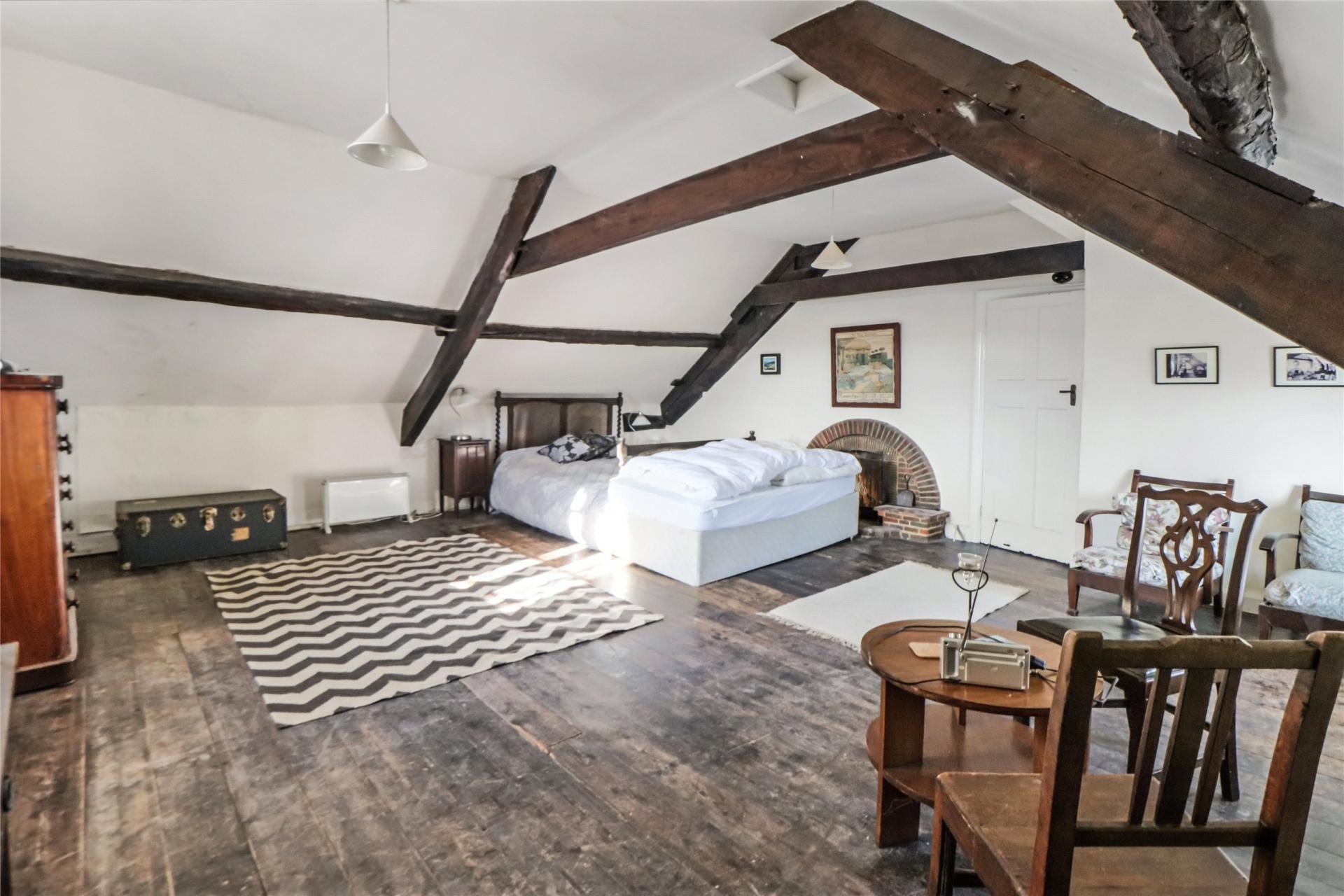 A staircase from the kitchen/dining leads to the first floor landing with a range of built in cupboards and airing cupboard. The principal bedroom is a large double aspect room with views towards Dunkery and original beams, window seat, open brick fireplace, feature stone and leaded window and exposed floorboards. The second bedroom enjoys similar views and has a built in wardrobe and to complete the accommodation there is a separate W.C with wash basin and a bathroom fitted with a three piece white and chrome suite with electric shower over the bath, second low level W.C. and tiled floor.