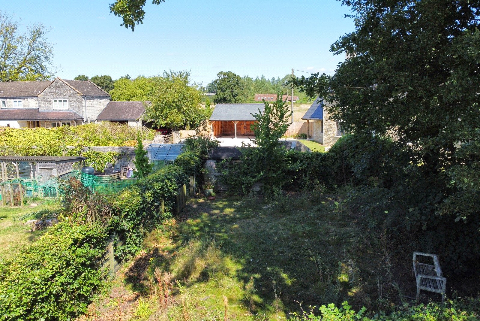 A delightful private garden arranged in two sections with the formal area being laid to lawn with raised planters all enclosed by mature hedging and a wall. A gap in the hedge leads through to the second area of garden being less cultivated and ideal for wildlife.