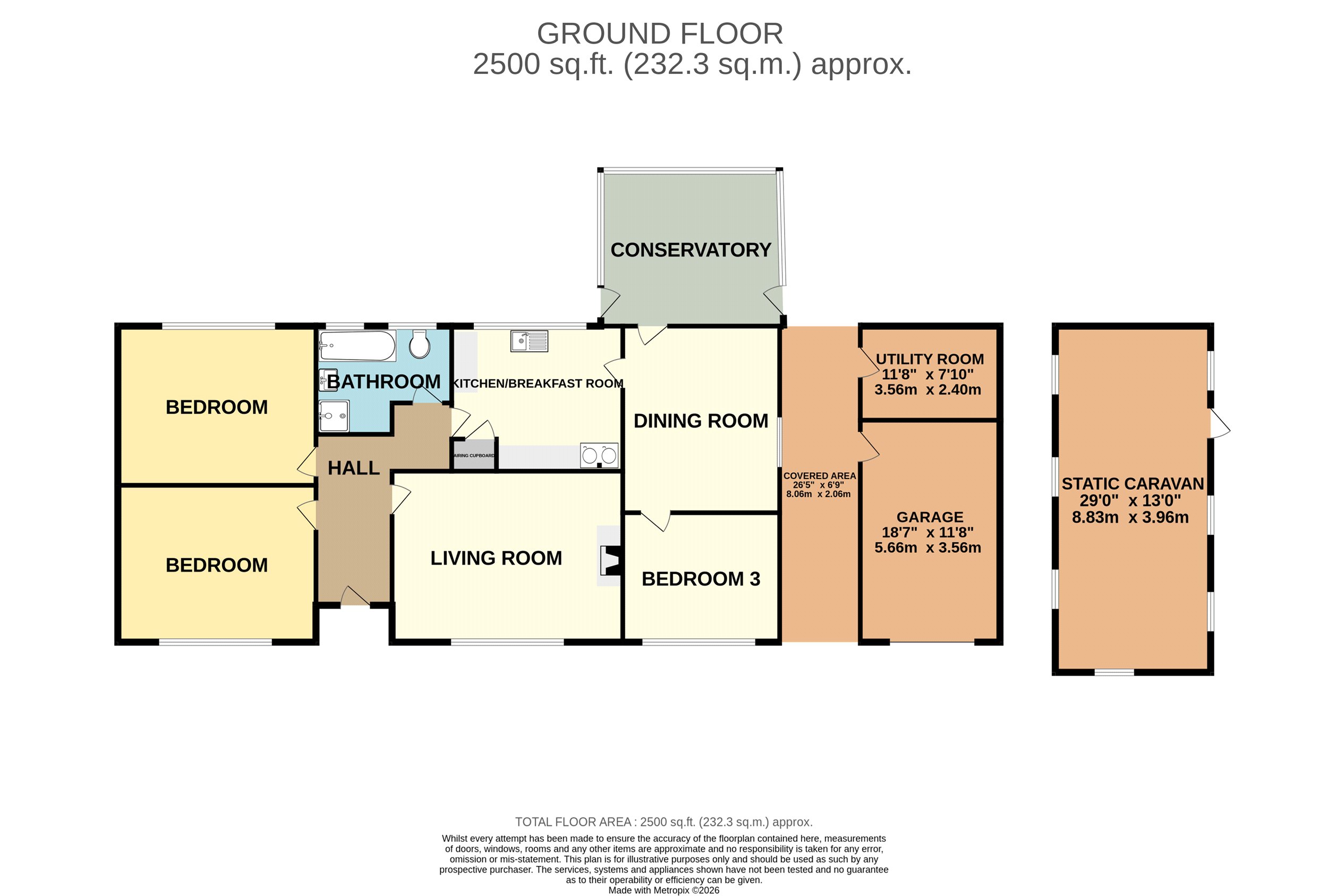 To the side of the garage is a static caravan, which is connected to mains power, water, and drainage.