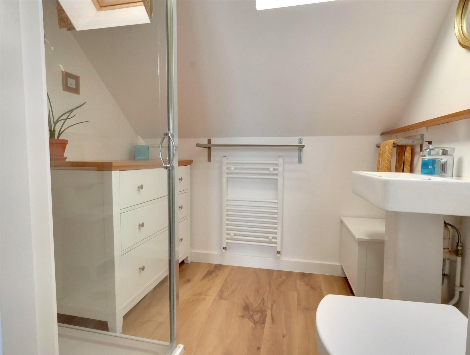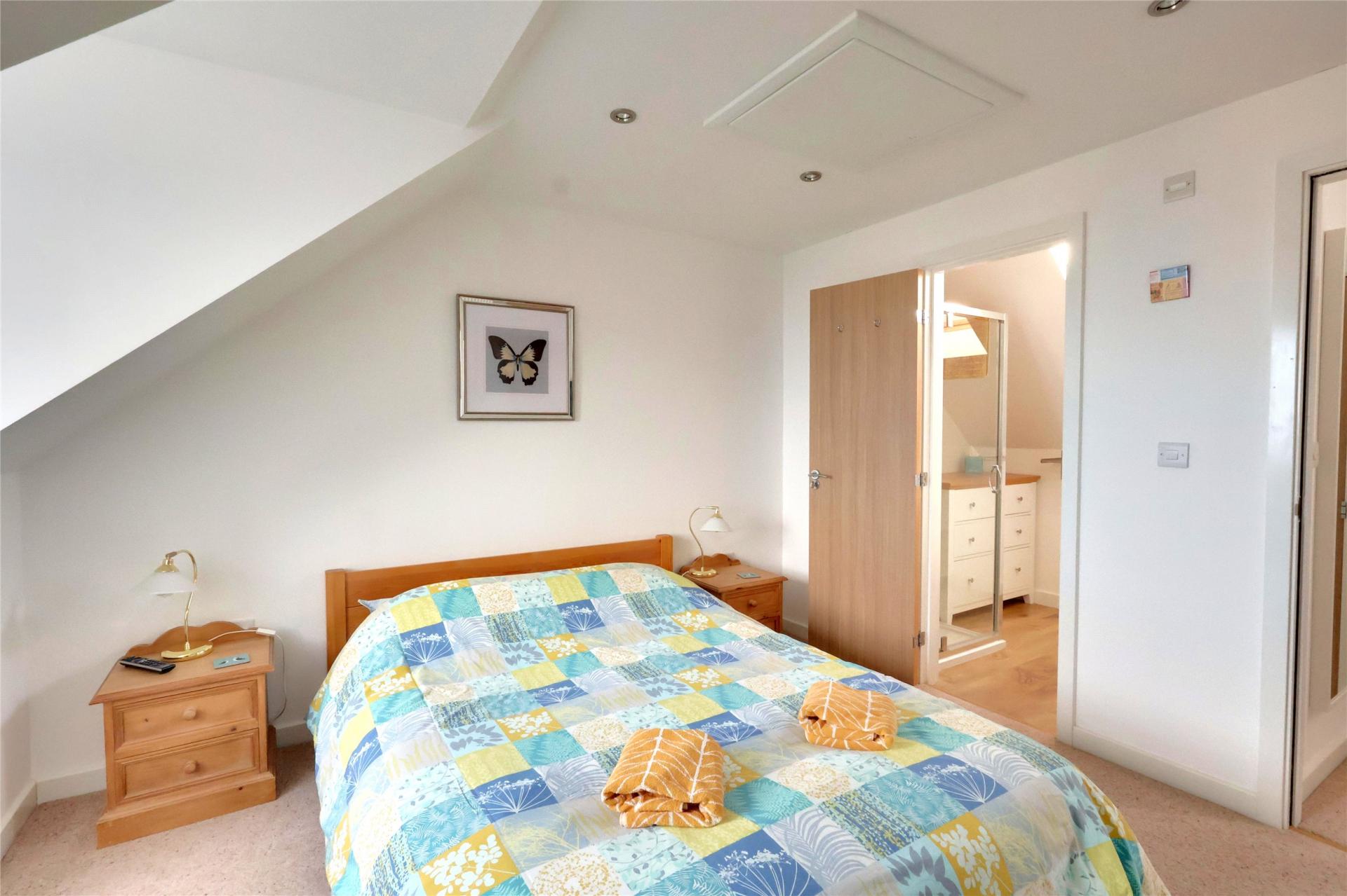 A carpeted staircase from the landing leads to the top floor where the principal bedroom suite enjoys wonderful coastal views and the comfort of an en-suite shower room fitted with a three piece white and chrome suite.
