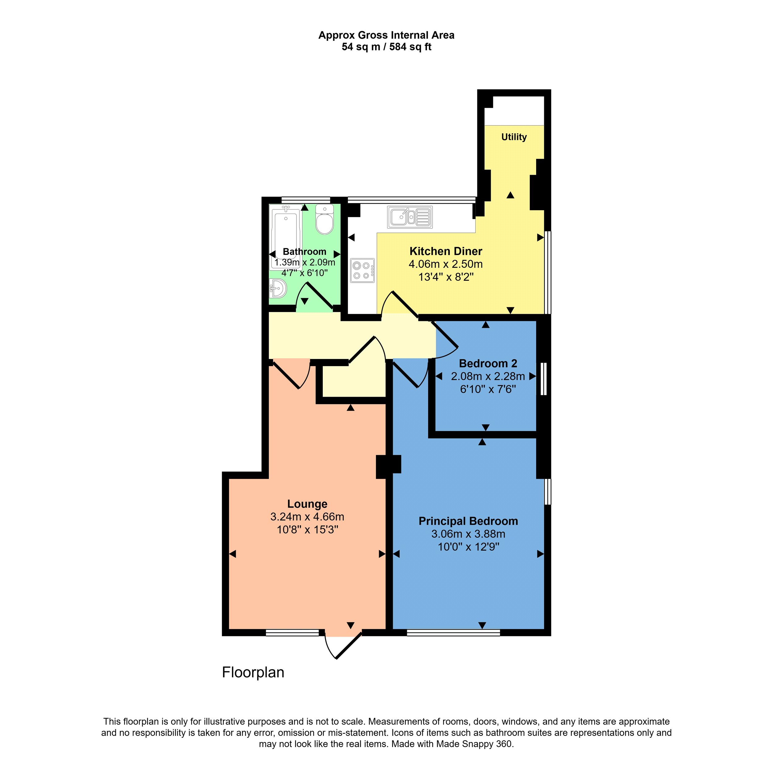 Approached from the private garden, the accommodation comprises in brief: Door into the spacious Lounge with door to an inner hallway (with cupboard for coats) giving access to all further rooms. The Kitchen/Breakfast Room is fitted with base units, there is a utility area and dual aspect windows. There is a bathroom and two bedrooms, the principle room being a good size double overlooking the garden while the second is a comfortable single that would ideally provide space for a study with window to the side aspect.