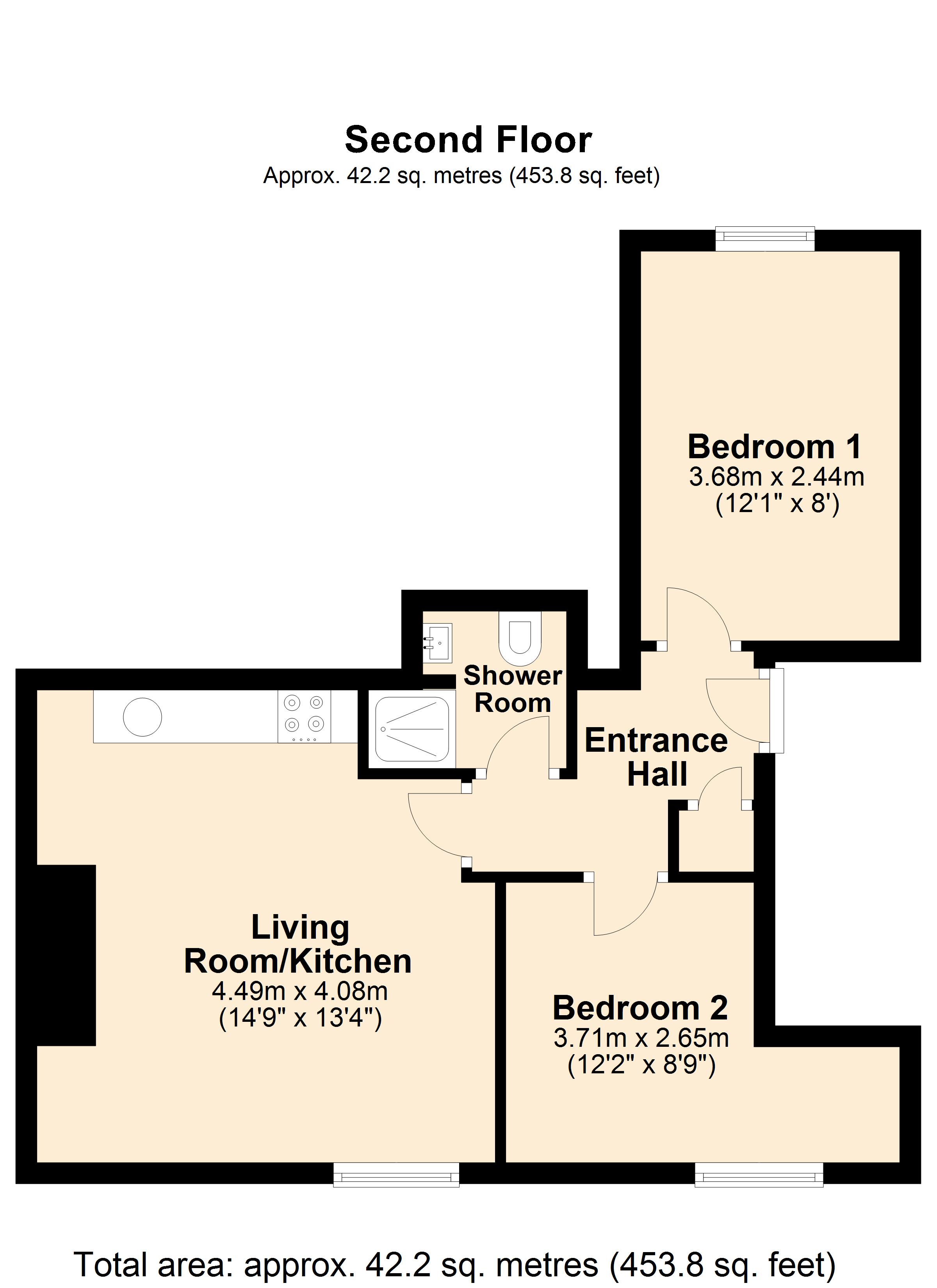 BEDROOM 2 12’1” x 8’8” (maximum): An L shaped room with wall mounted MyLek electric radiator, smooth plastered ceiling and sash window to front aspect.