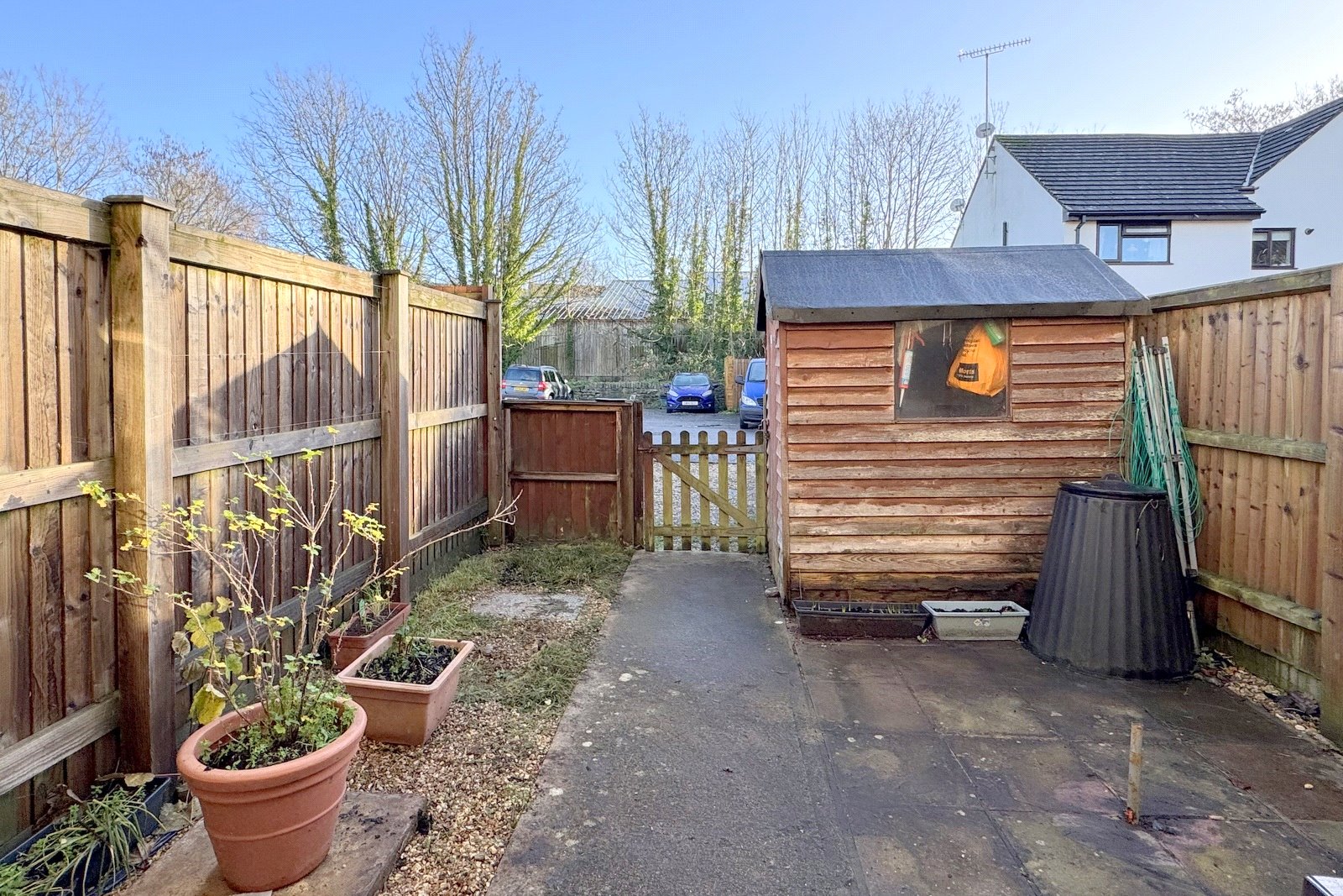The rear garden is a small easy to maintain garden with an area of paving and shingle ideal for pots and tubs, timber shed and a gate opening to private parking for 2 cars.