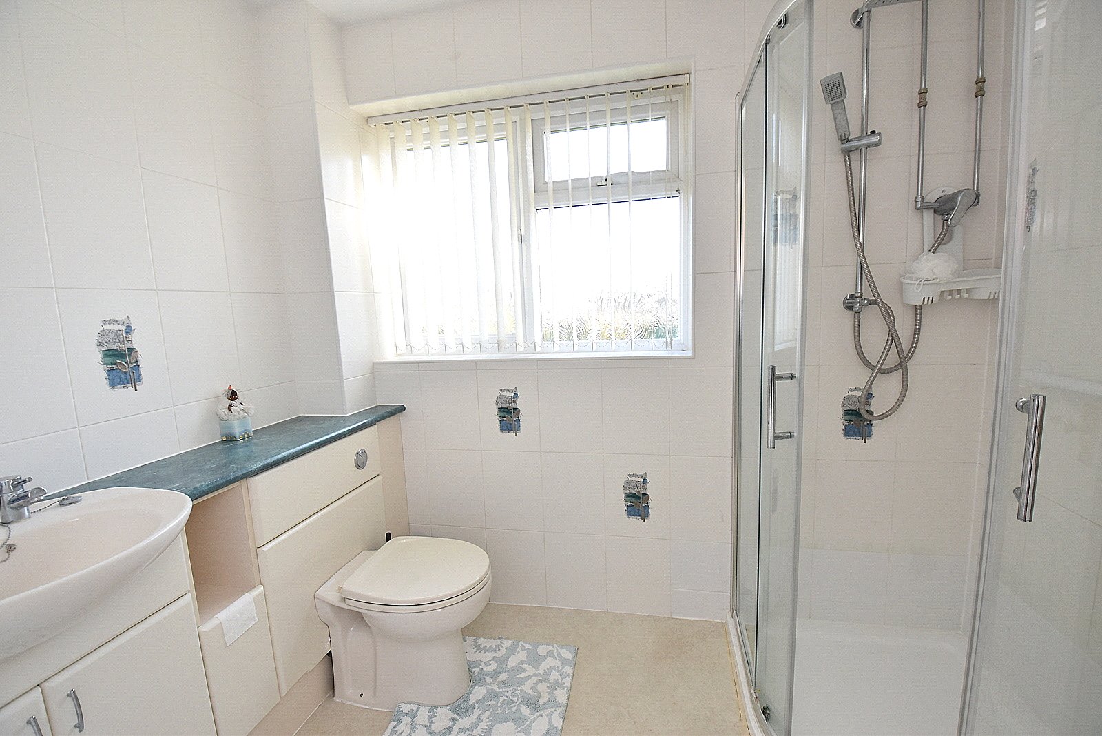 SHOWER ROOM: Shower cubicle, fitted units incorporating low level WC with concealed cistern and semi recess wash hand basin. Heated towel rail, fully tiled walls and double glazed windows to rear aspect.