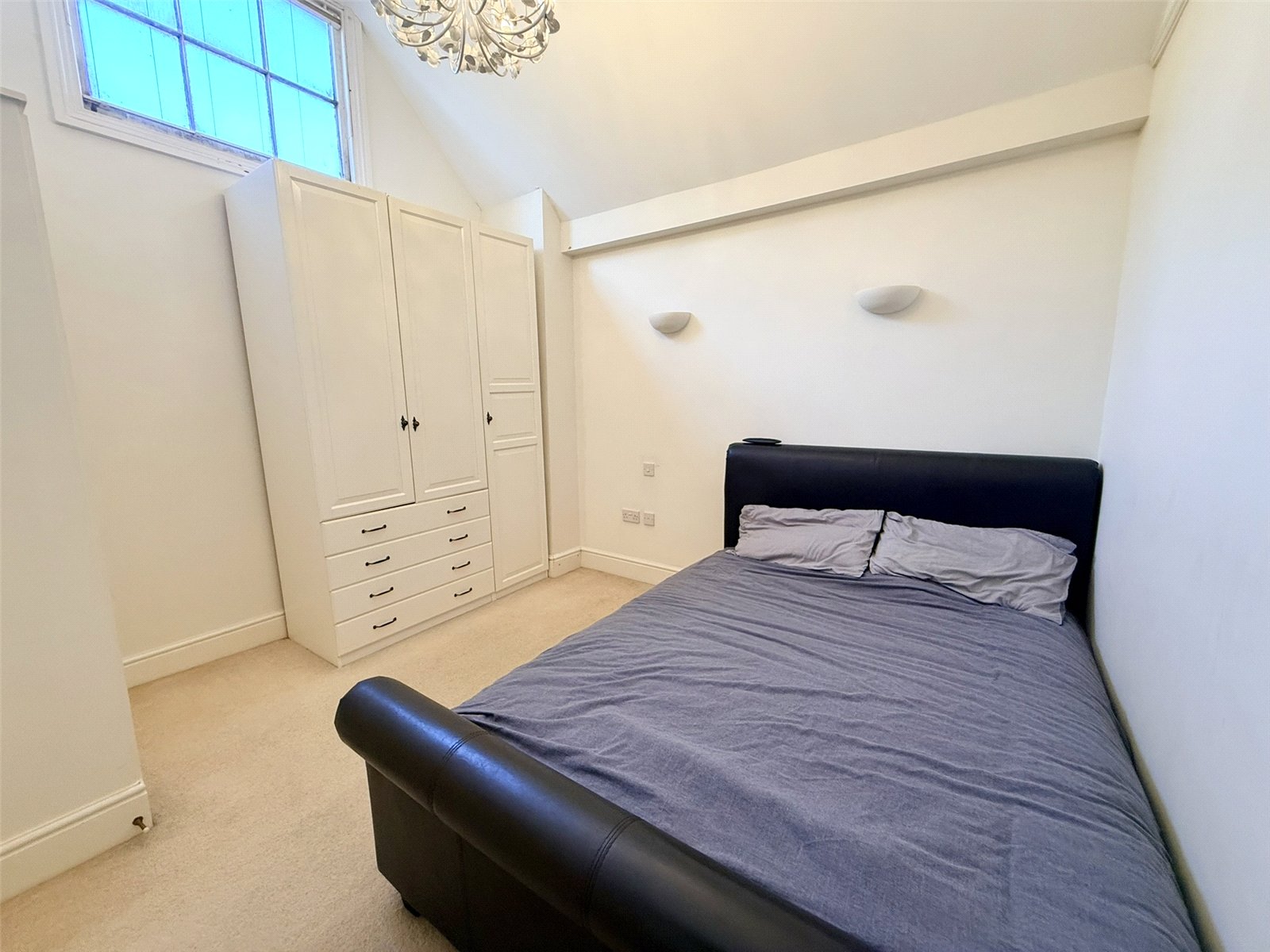 BEDROOM 1: 11’10” x 10’10” This room is a particular feature enjoying a high vaulted ceiling. Radiator, two wall light points, built-in wardrobe and window to side aspect.