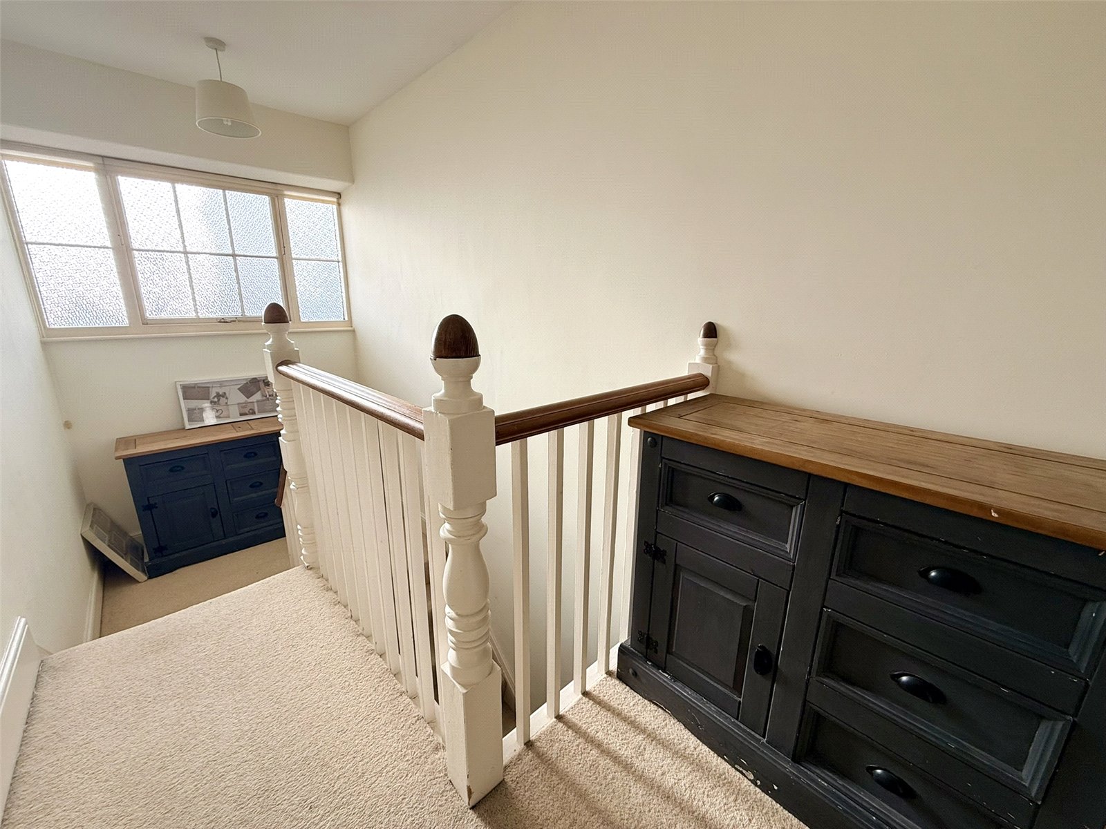 LANDING: Split level landing with obscured window to front aspect, smooth plastered ceiling with smoke detector, radiator and window to side aspect.