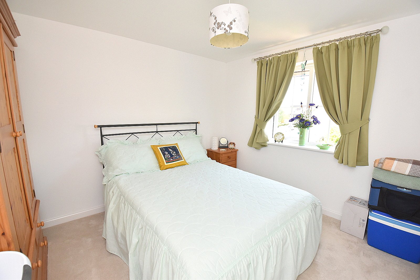 BEDROOM 2: 13’7” (to front of wardrobe) x 8’5” Two double glazed windows to front aspect with an outlook over the green and hilltops, radiator, wall to wall mirror fronted wardrobe and smooth plastered ceiling.