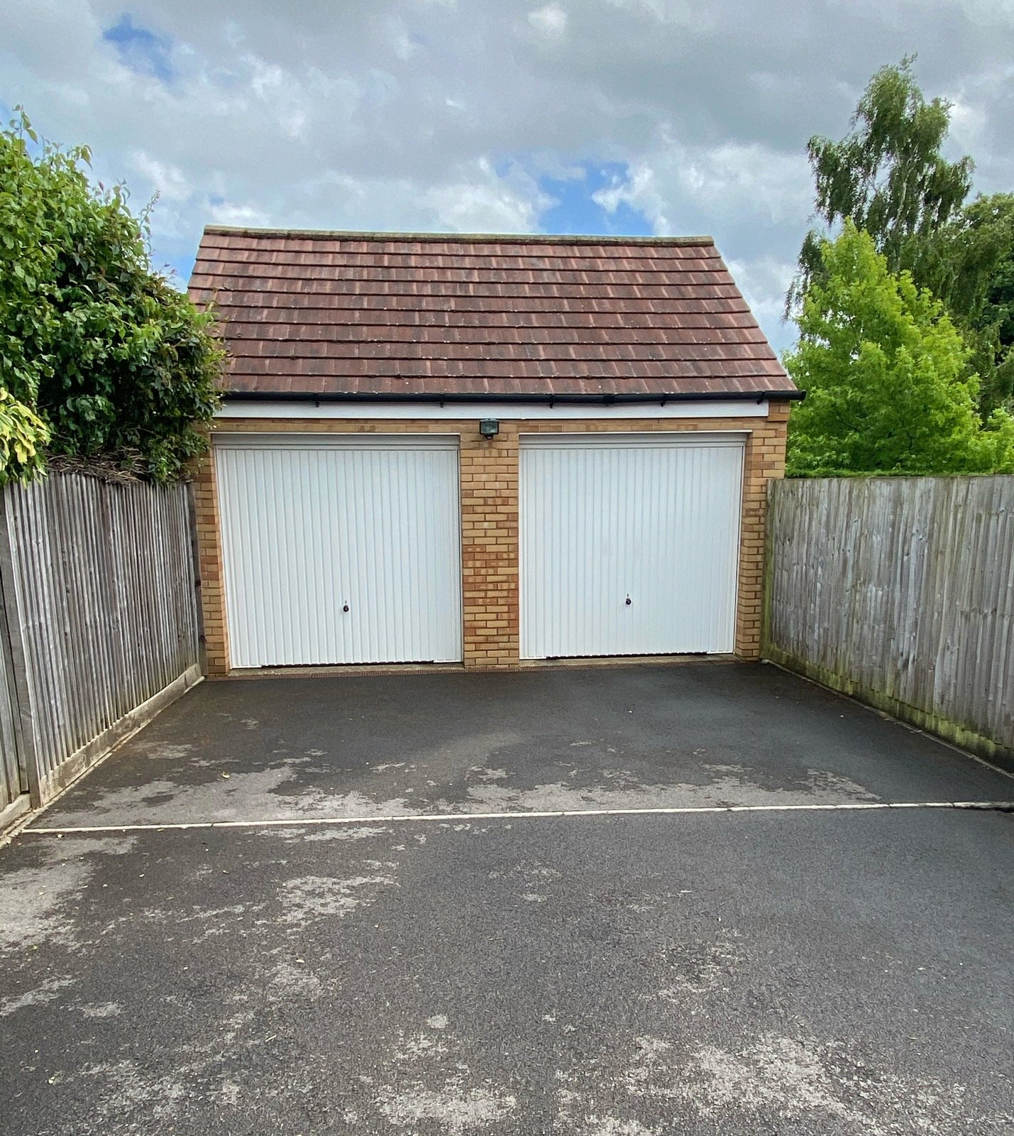 DOUBLE GARAGE: 18’5” x 17’ Twin up and over door with light and power.