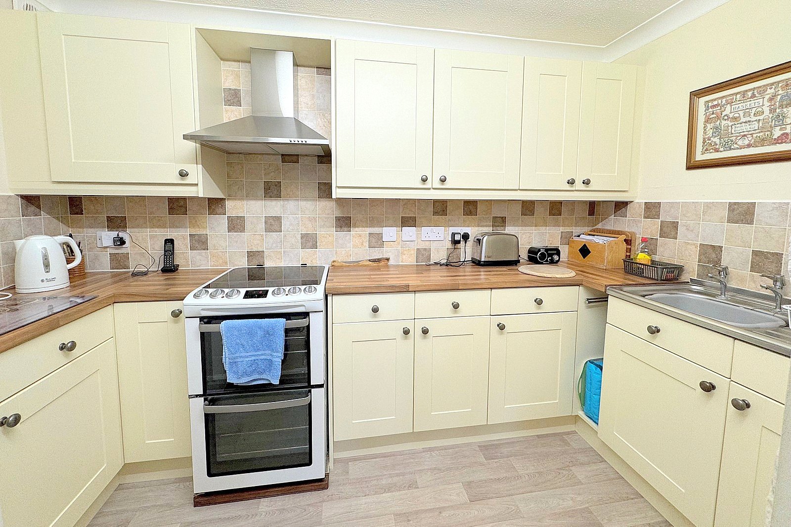 Immaculately presented throughout, the property is ready for immediate occupation, having been maintained to a high standard. The spacious lounge features an attractive bay window, allowing an abundance of natural light to fill the space and creating a warm, welcoming atmosphere. The generously proportioned kitchen is wider than most within the building, with additional storage units and space for appliances.