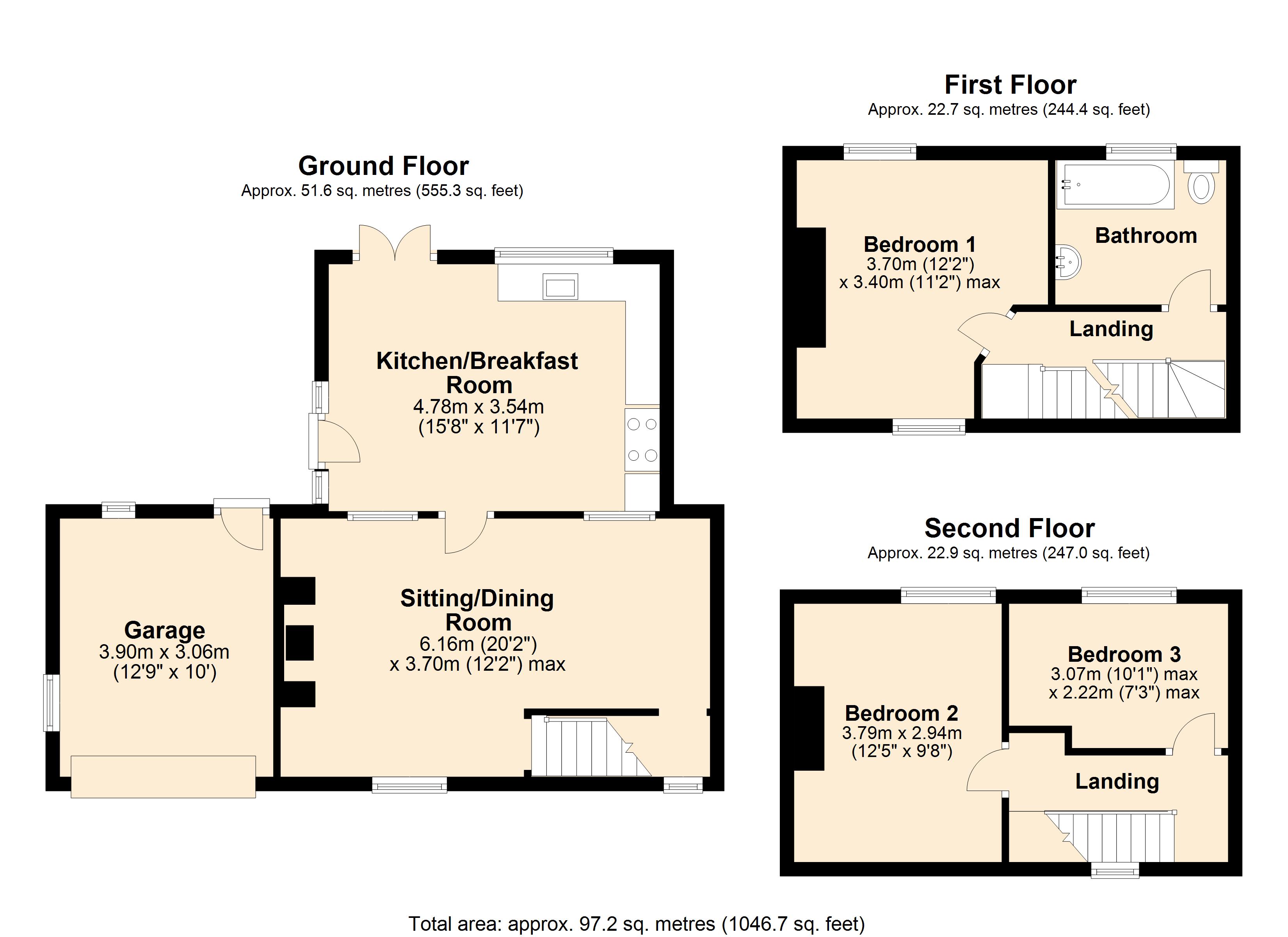 Moving to the first floor, there is a family bathroom and bedroom enjoying a dual aspect with countryside views, while the second floor has two further bedrooms, each offering delightful rural views.