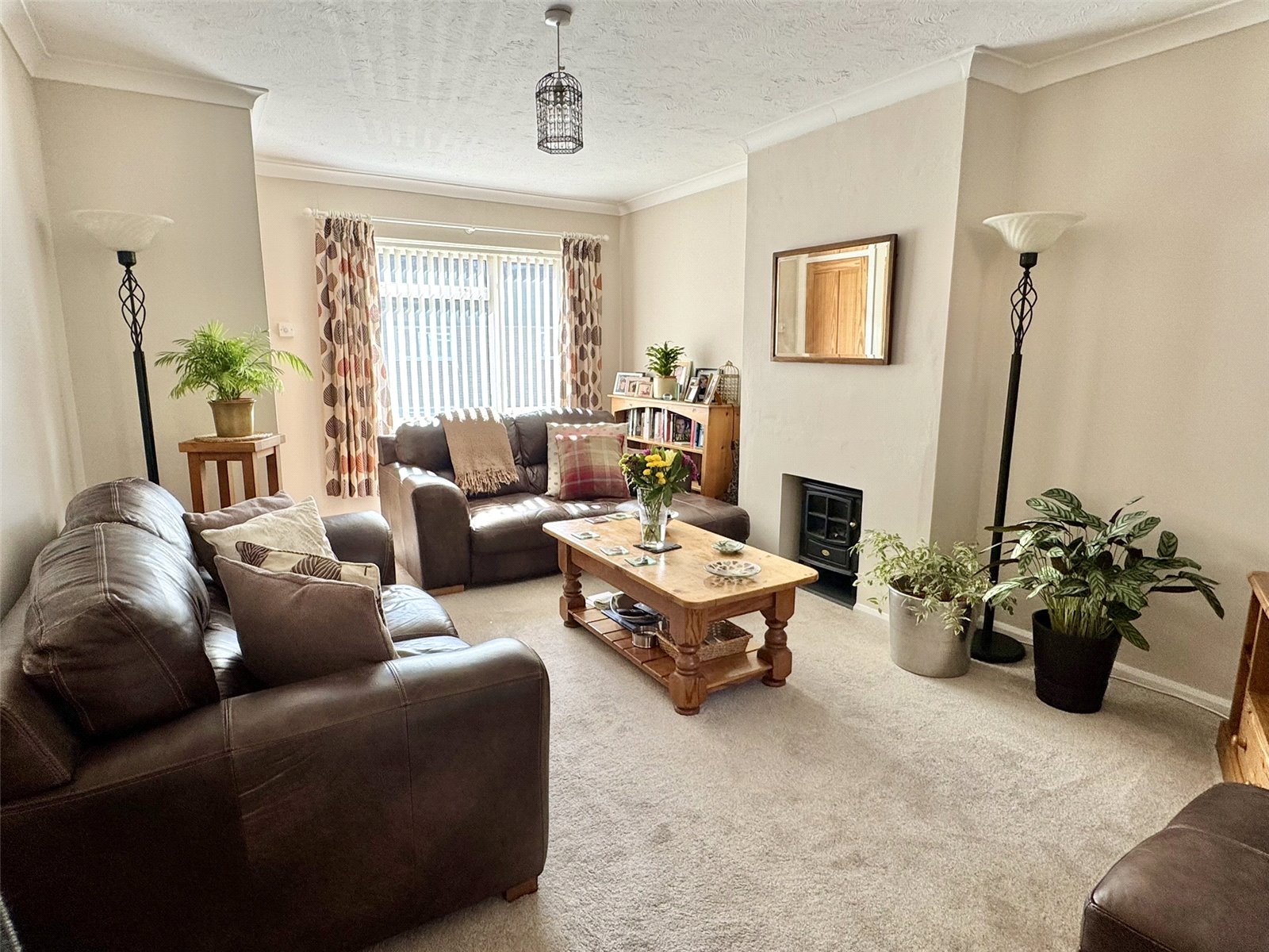 Living Room 17'2" x10'3" (5.23m x3.12m). Double aspect room with uPVC double glazed window to the front and rear, feature fire place, radiator, door to kitchen.