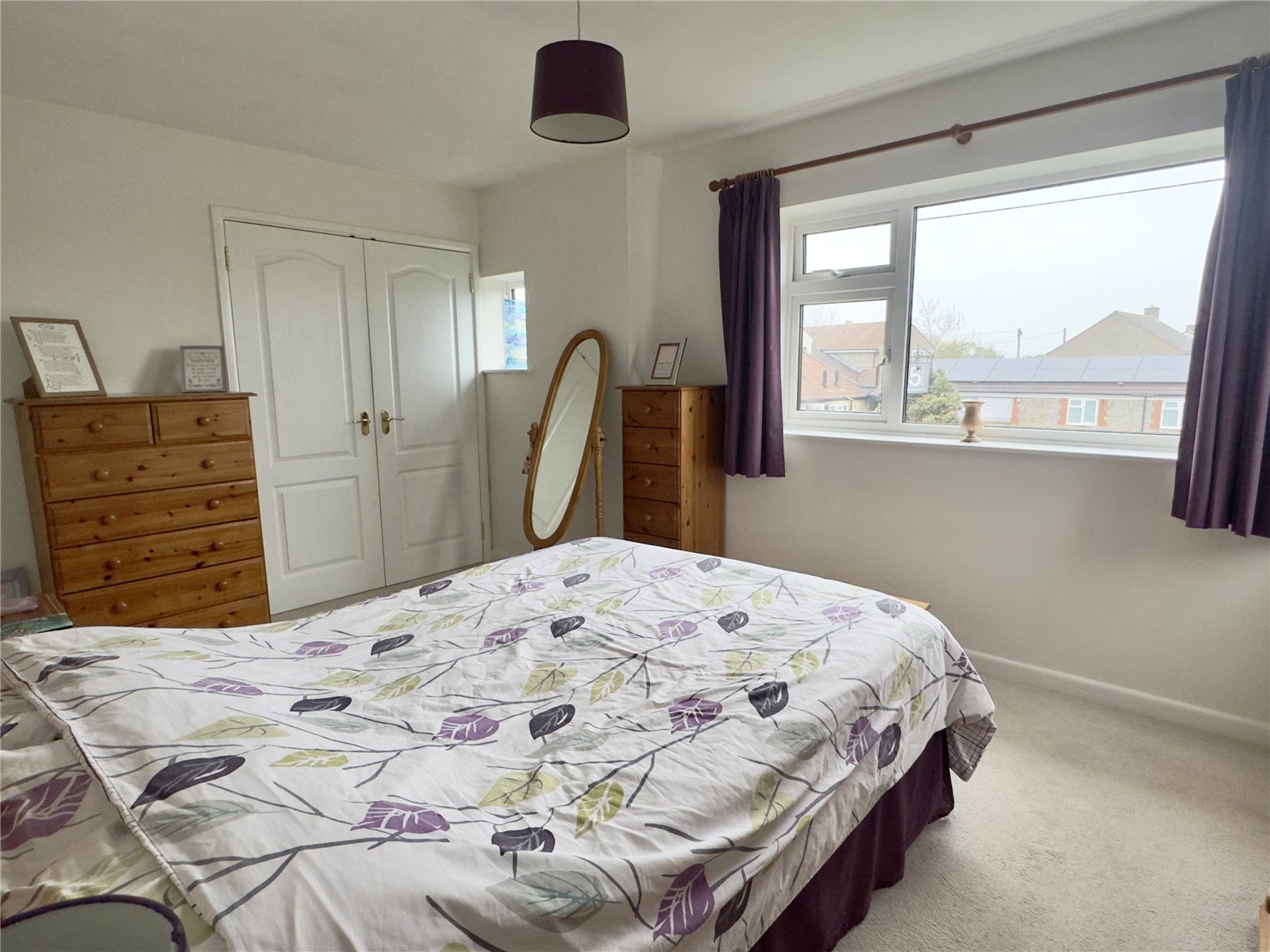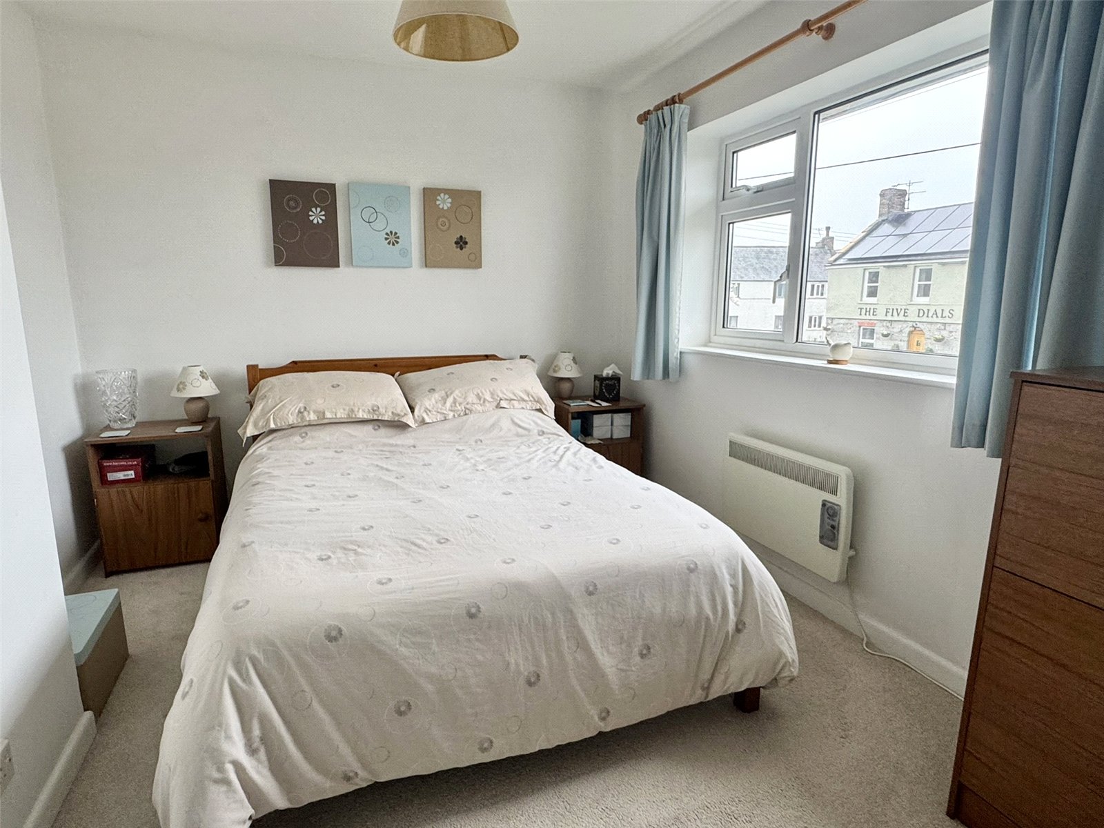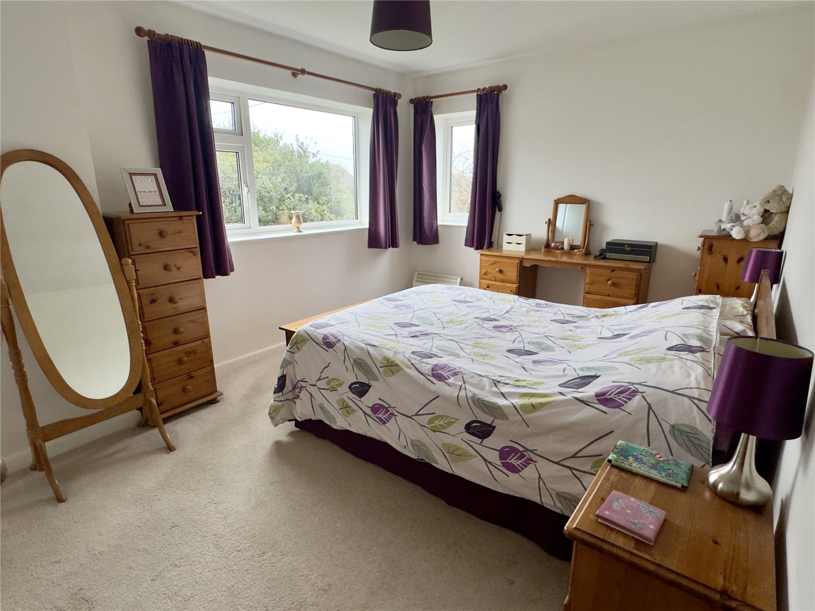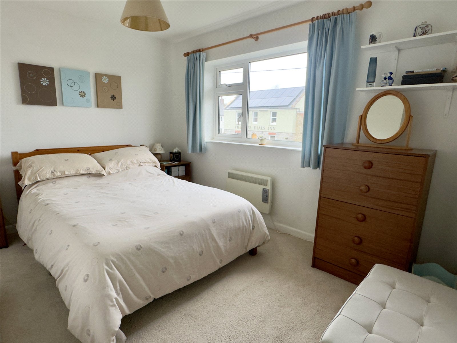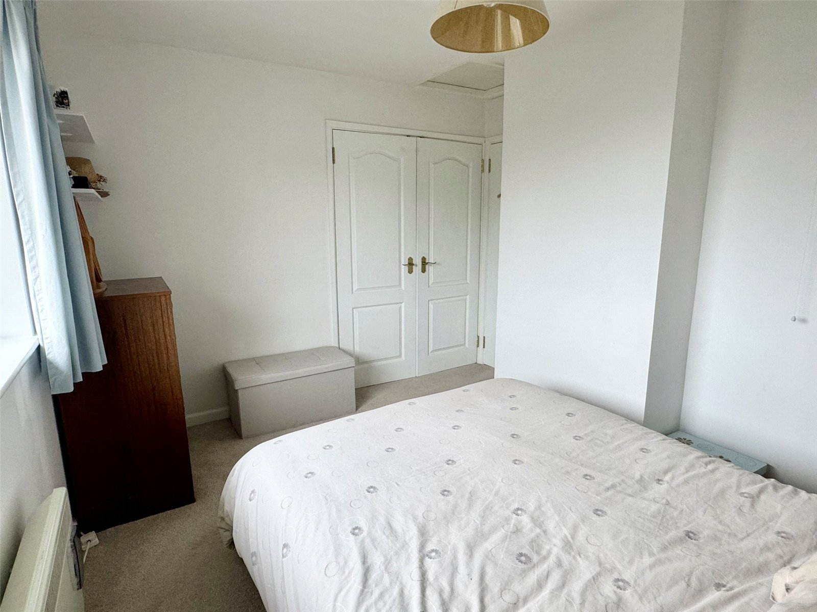 Bedroom Two 11'6" (3.50m) x 8' (2.44m) widening to 10' (3.06m) excluding wardrobes. Built-in double wardrobe, electric heater and double glazed window to the front aspect.