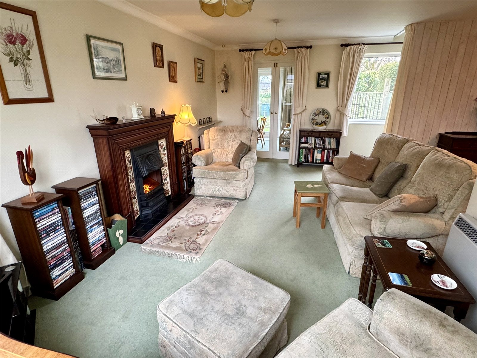 Lounge 17'11" x 9'11" (5.46m x 3.02m). Triple aspect room with double glazed windows to the front, side and rear. Feature fireplace with inset electric flame effect fireplace. Two electric night storage heaters, television point. Stairs rising to first floor. Wooden glazed double doors out to second reception room.
