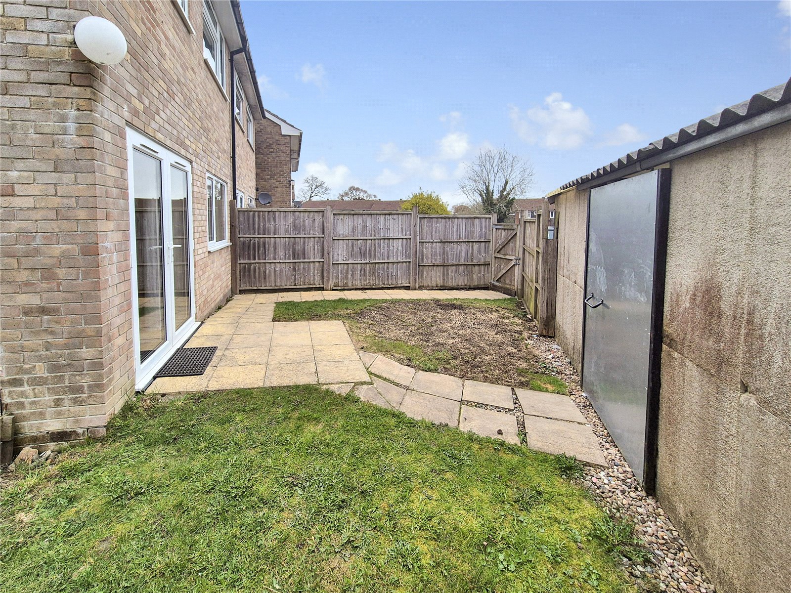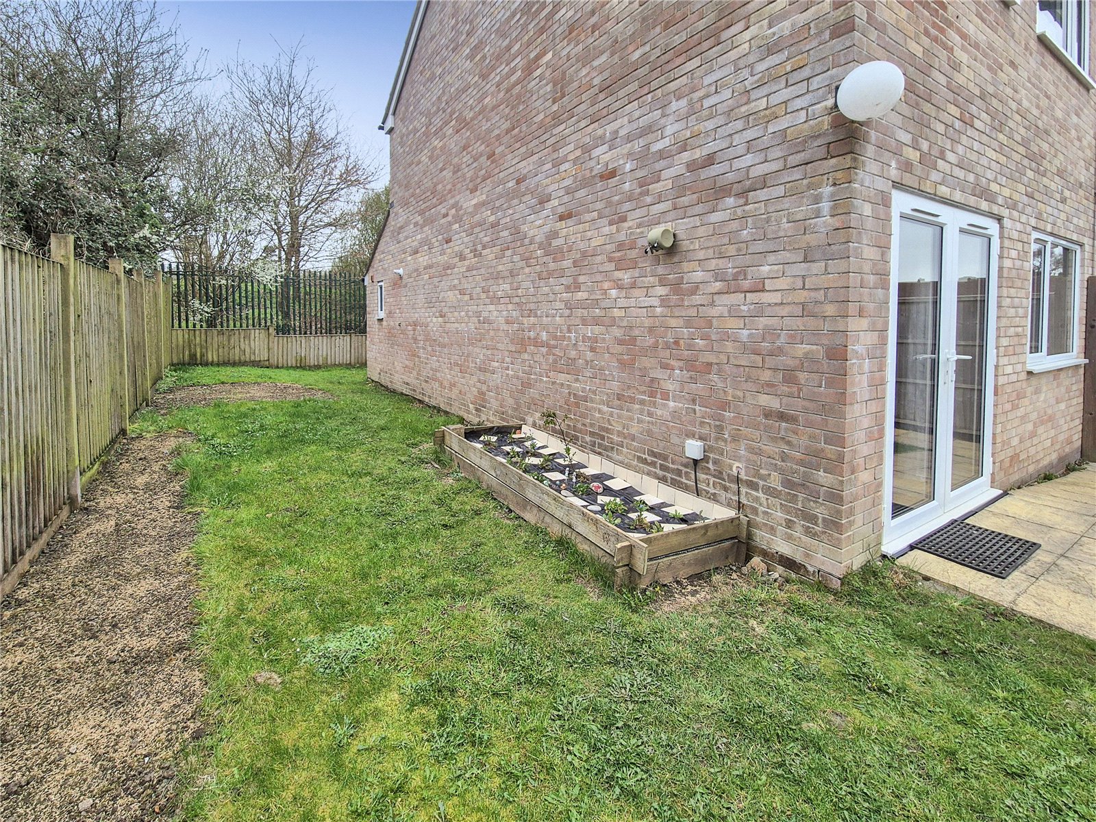 Outside The property is approached via a shared pedestrian pathway leading to a wooden gate with pathway to the front entrance door. Area laid to lawn which opens up to the side of the property with a further area laid to lawn and a raised flower bed. The rear garden has a small patio area with pathway leading to the double garage and a further pathway to a wooden gate giving access to the parking.