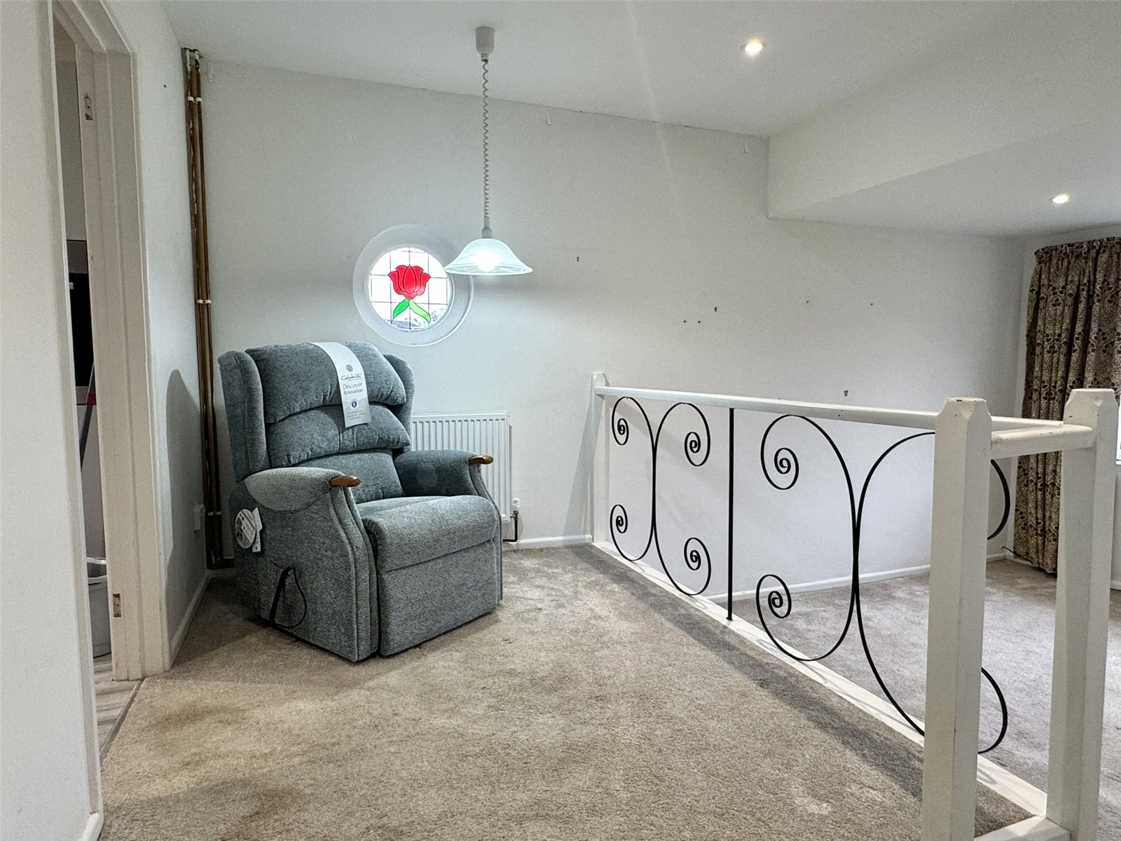 Dining Area 6'7" x 11'6" (2m x 3.5m). Feature single glazed circular window to side aspect. radiator. Balcony overlooking lounge with steps down to lounge area and opening through to kitchen.