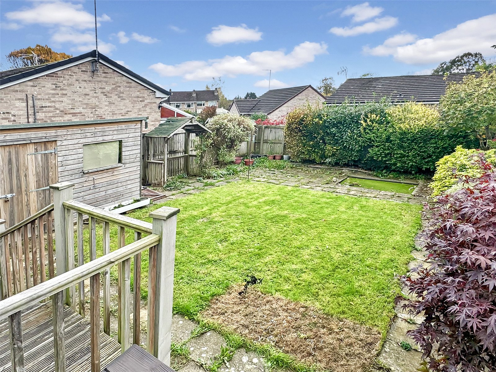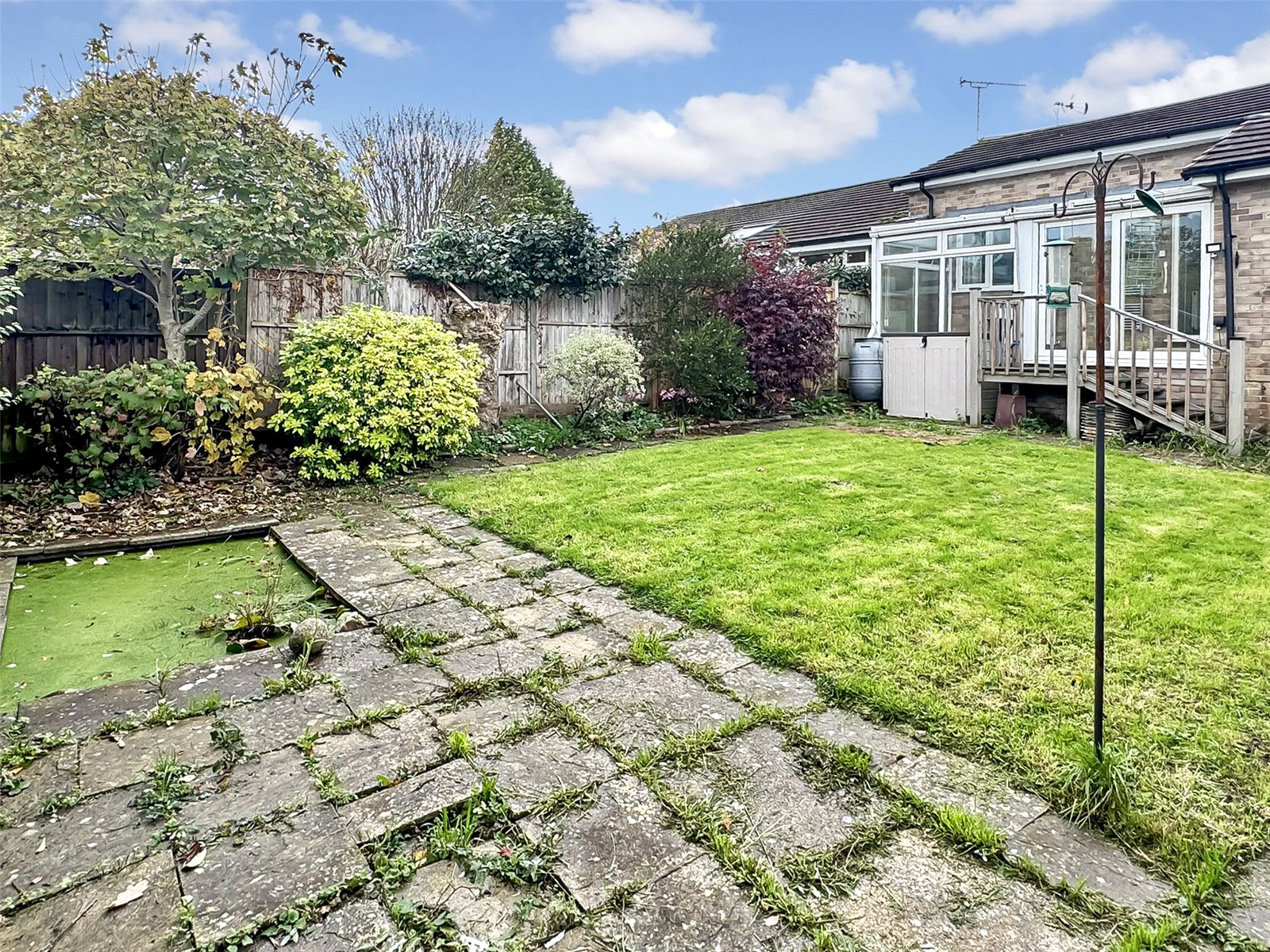 Rear The rear garden is mainly laid to lawn with areas of paving providing seating/entertaining space whilst giving access to the feature pond and wooden storage shed. Decked steps lead up to the conservatory. Outside tap. There is a selection of flower borders and mature hedging enclosed by wooden fencing.