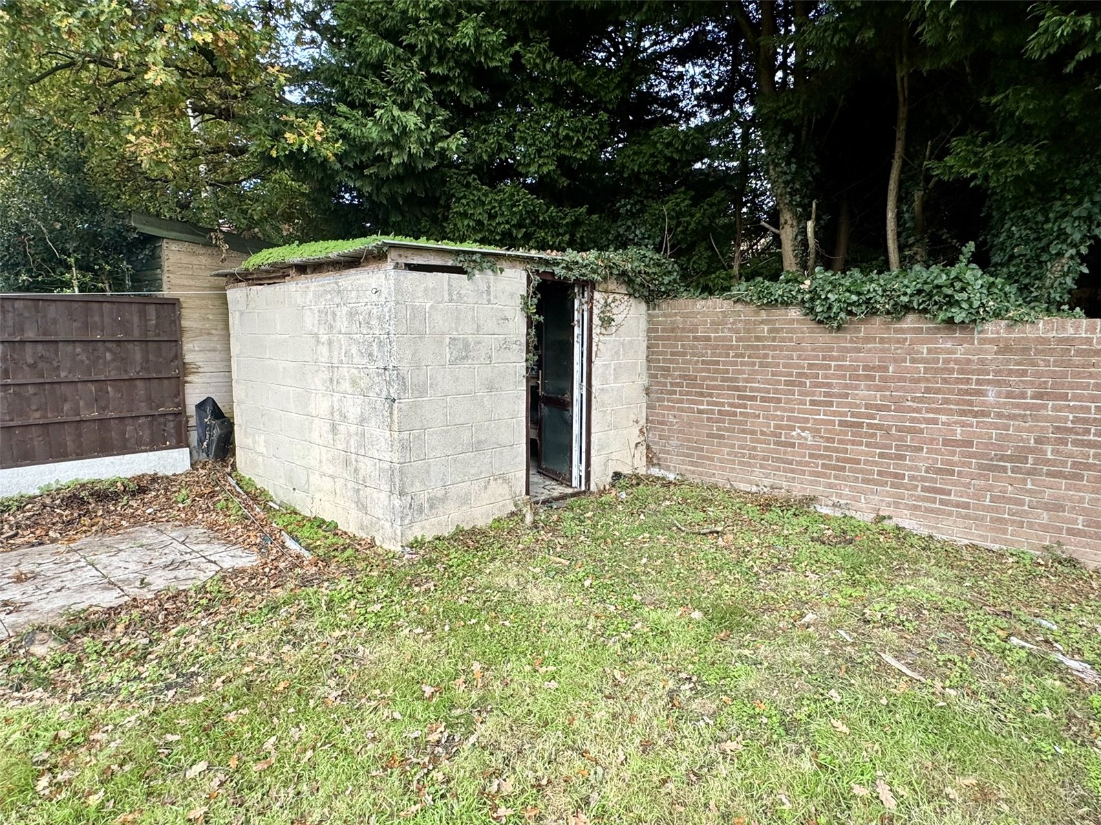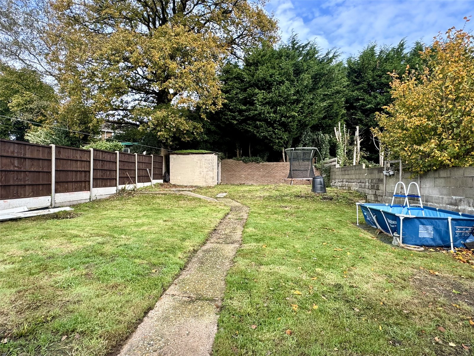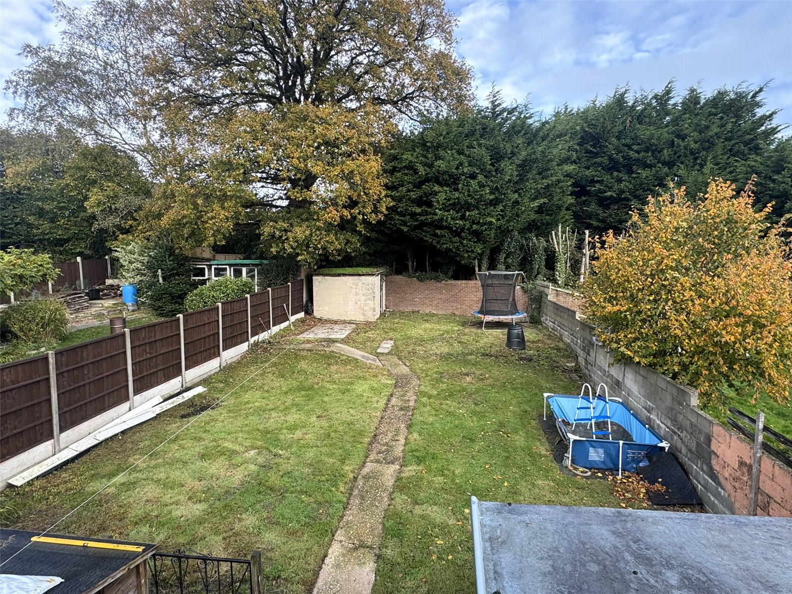 Rear The rear garden is a generous size made up of a large patio seating area leading to a long lawn with concrete path through the centre giving access to a block-built store room situated at the rear of the garden.