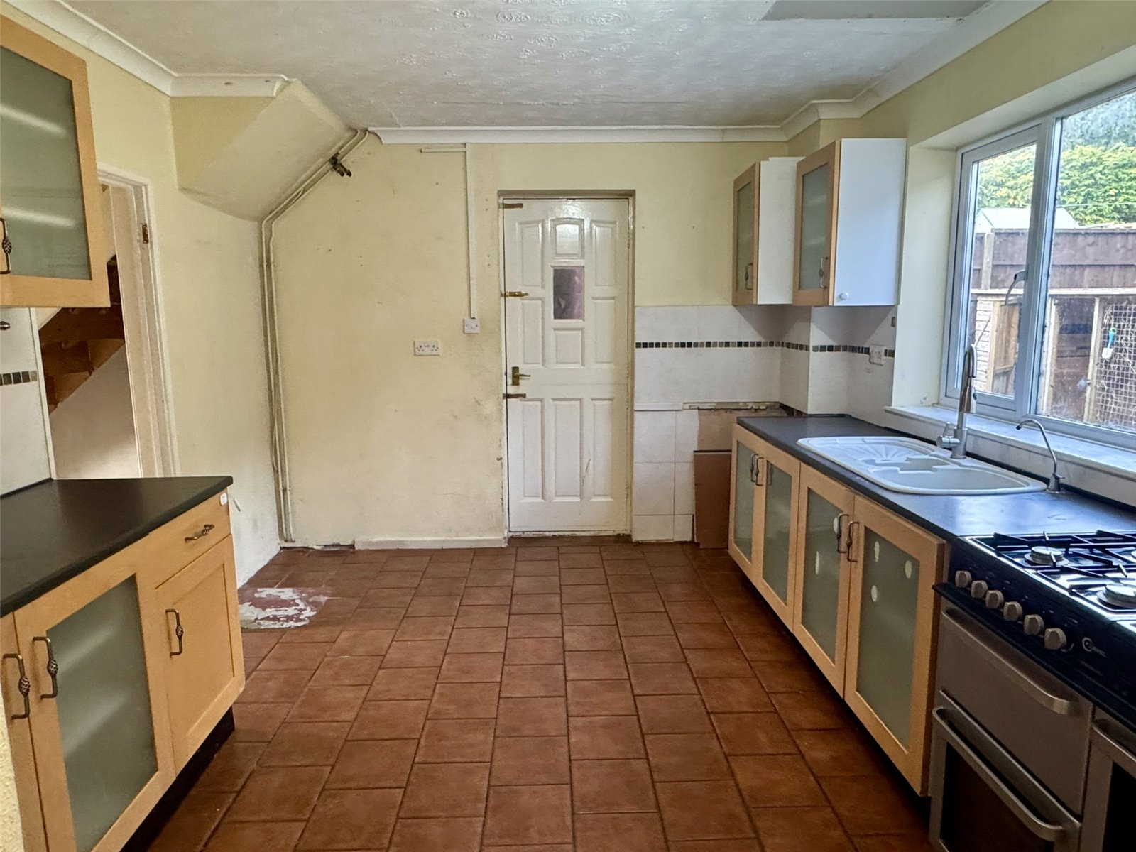 Kitchen 11'11" x 10'8" (3.63m x 3.25m). Fitted with a range of matching wall and base units set beneath worktops with inset one and a half bowl sink and drainer. Space for fridge freezer, space and plumbing for dishwasher, space for cooker. Tiled flooring, tiled splashbacks and uPVC double glazed window to the rear aspect. Opening through to dining room and door out to utility.