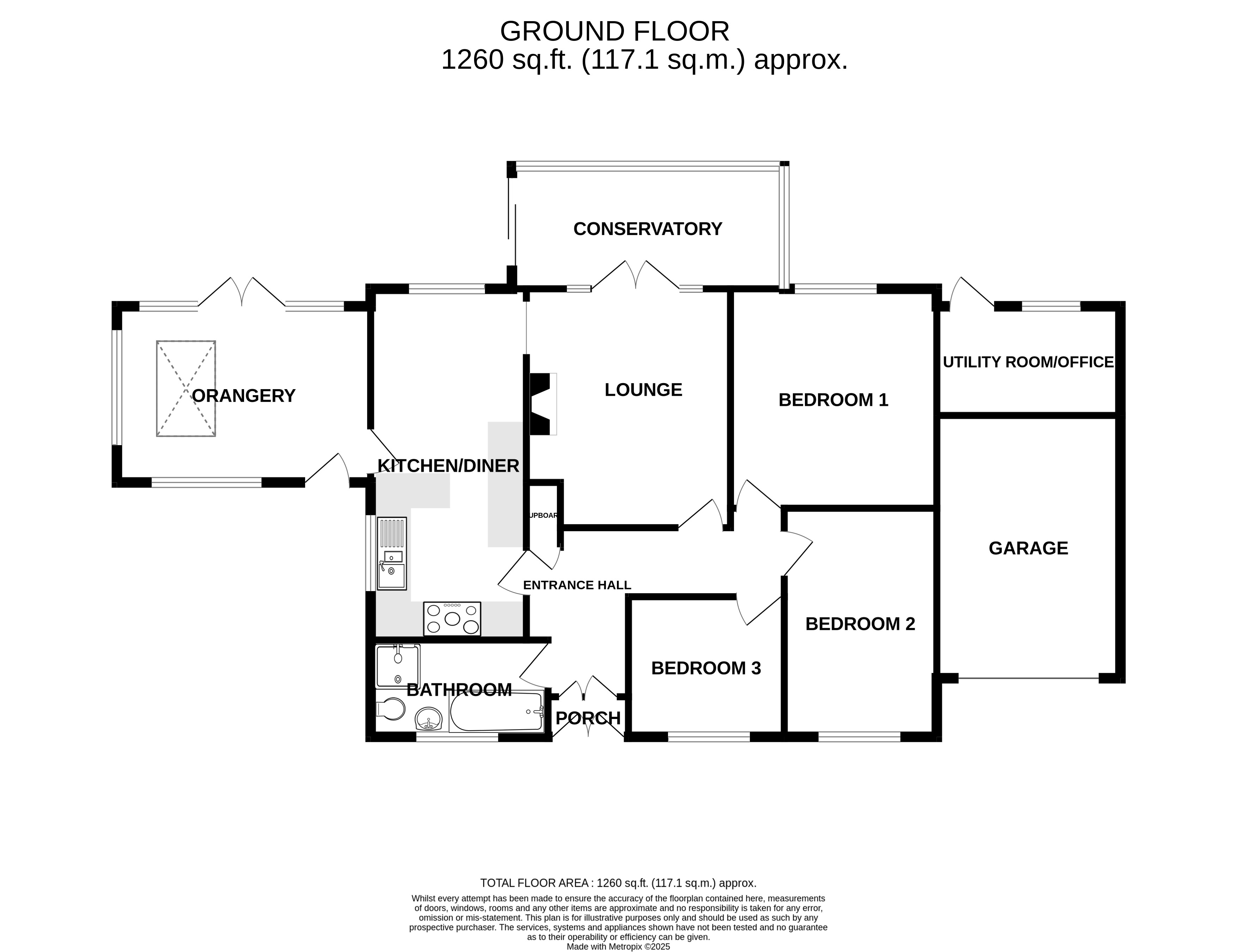 Accommodation comprises: Porch, entrance hall, lounge, kitchen/diner, Orangery, conservatory, three bedrooms, bathroom, garage and utility/office.