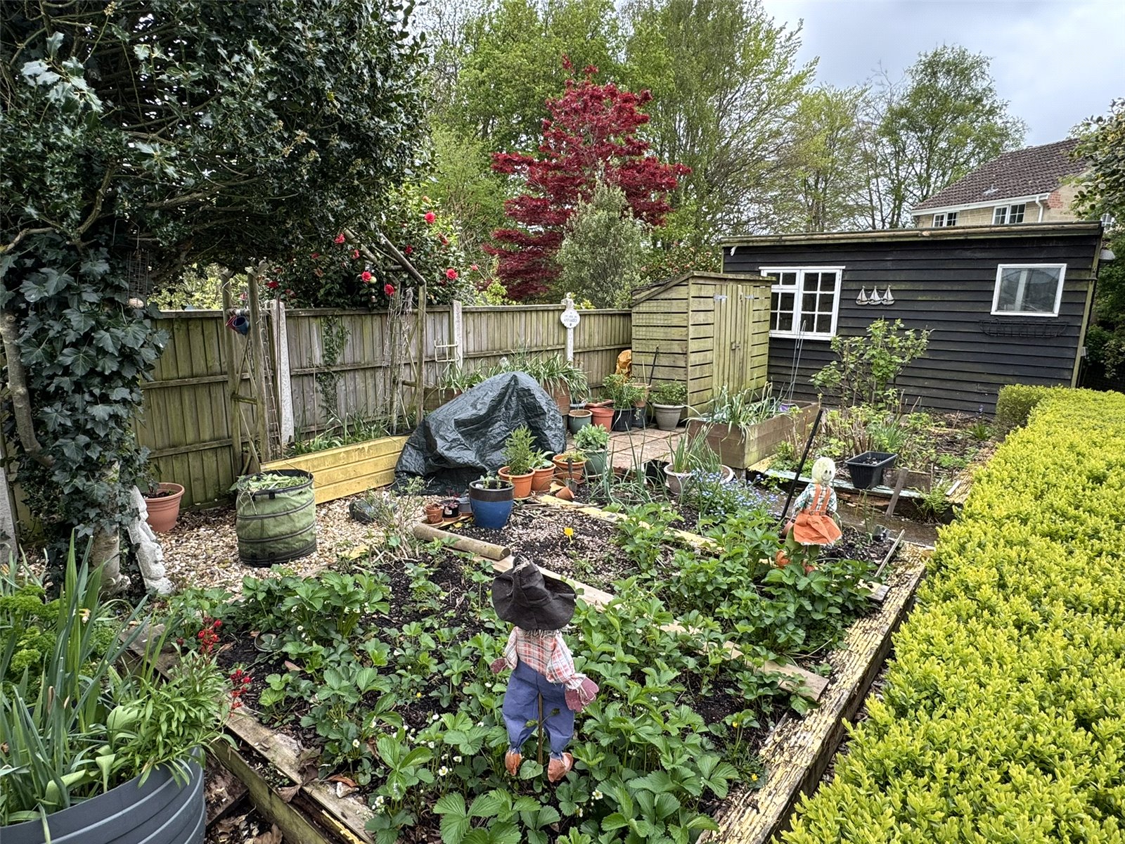A beautiful mature and well designed rear garden provides ample space and planting for those who are greenfingered. A large lawn area leads to an area of raised flower borders housing a vast amount of mature planting and feature pond. To the side is a working area with a selection of raised vegetable beds accompanied by a greenhouse and wooden storage shed with attached additional potting shed.