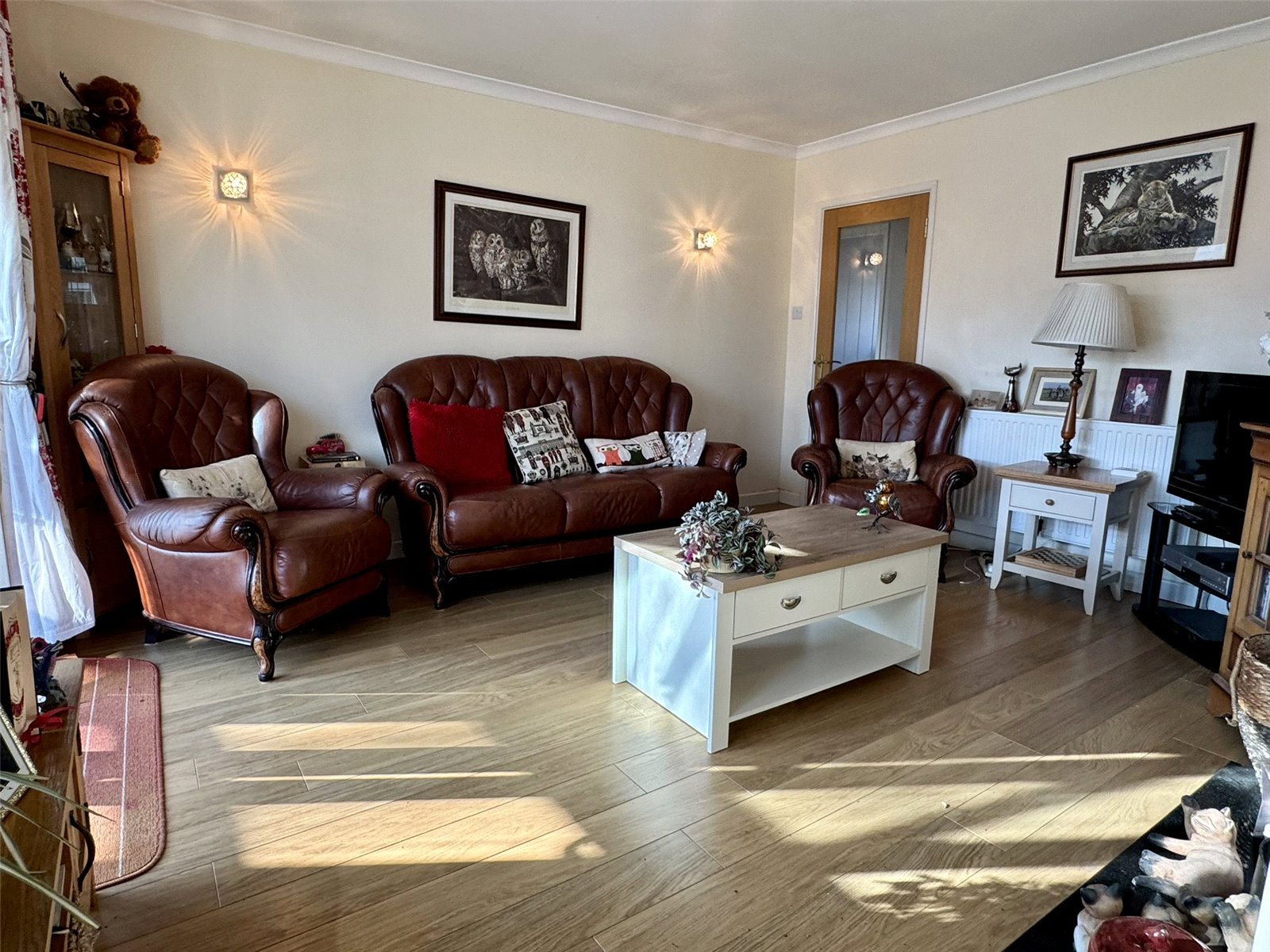 Lounge 13'5" x 11'6" (4.1m x 3.5m). Fireplace with inset multi-fuel burner, radiator, television point, door to entrance hall and double glazed double doors out to conservatory.
